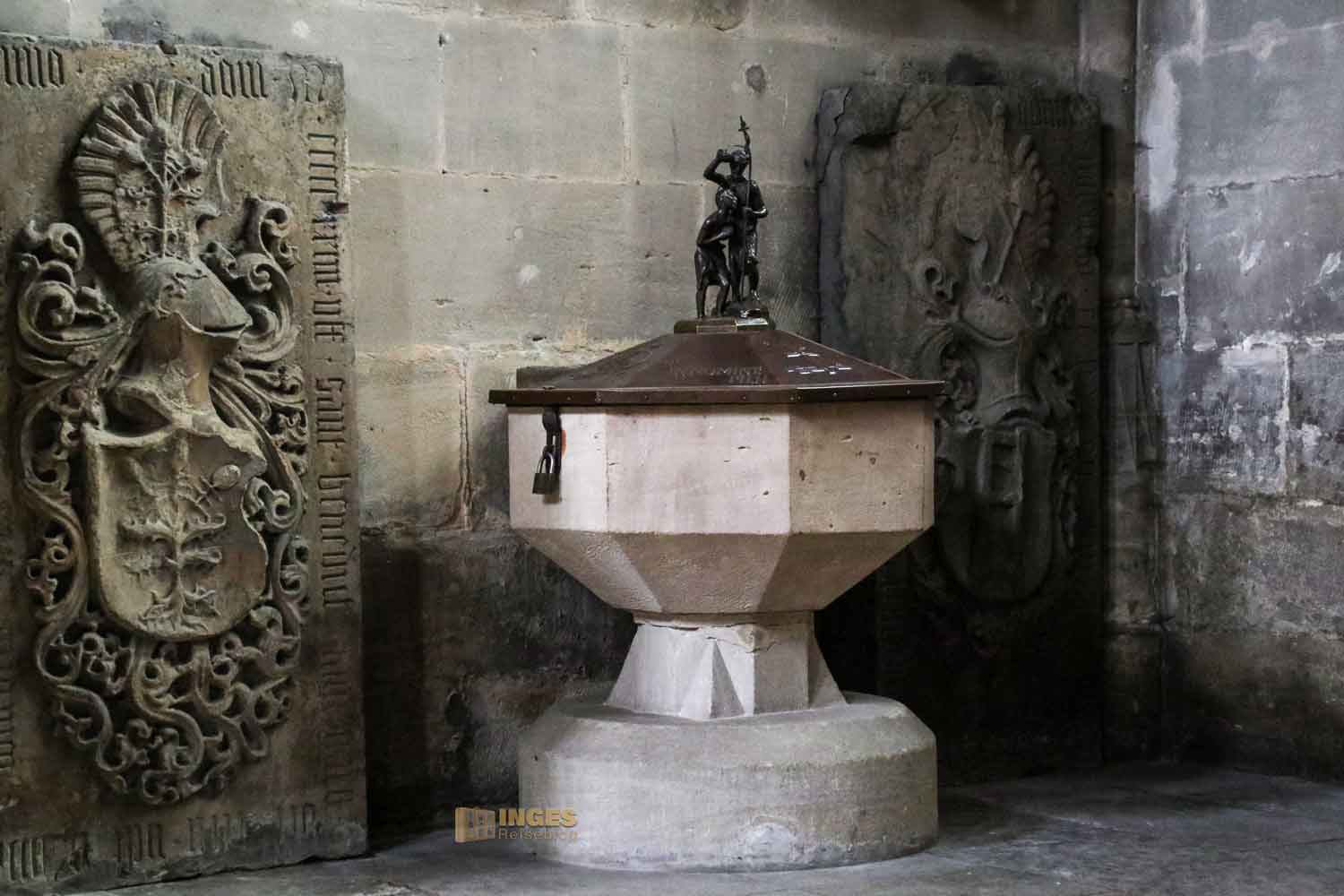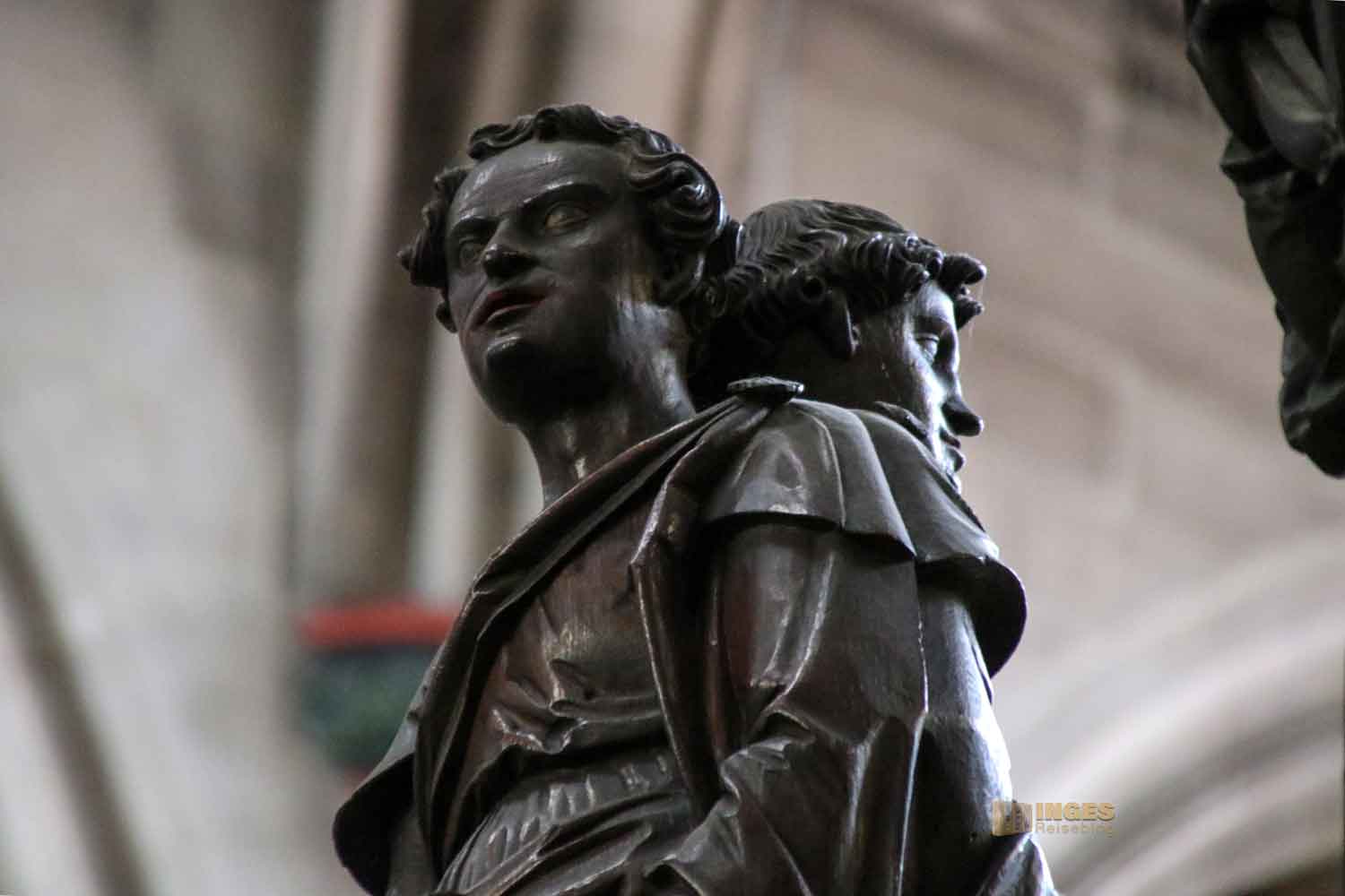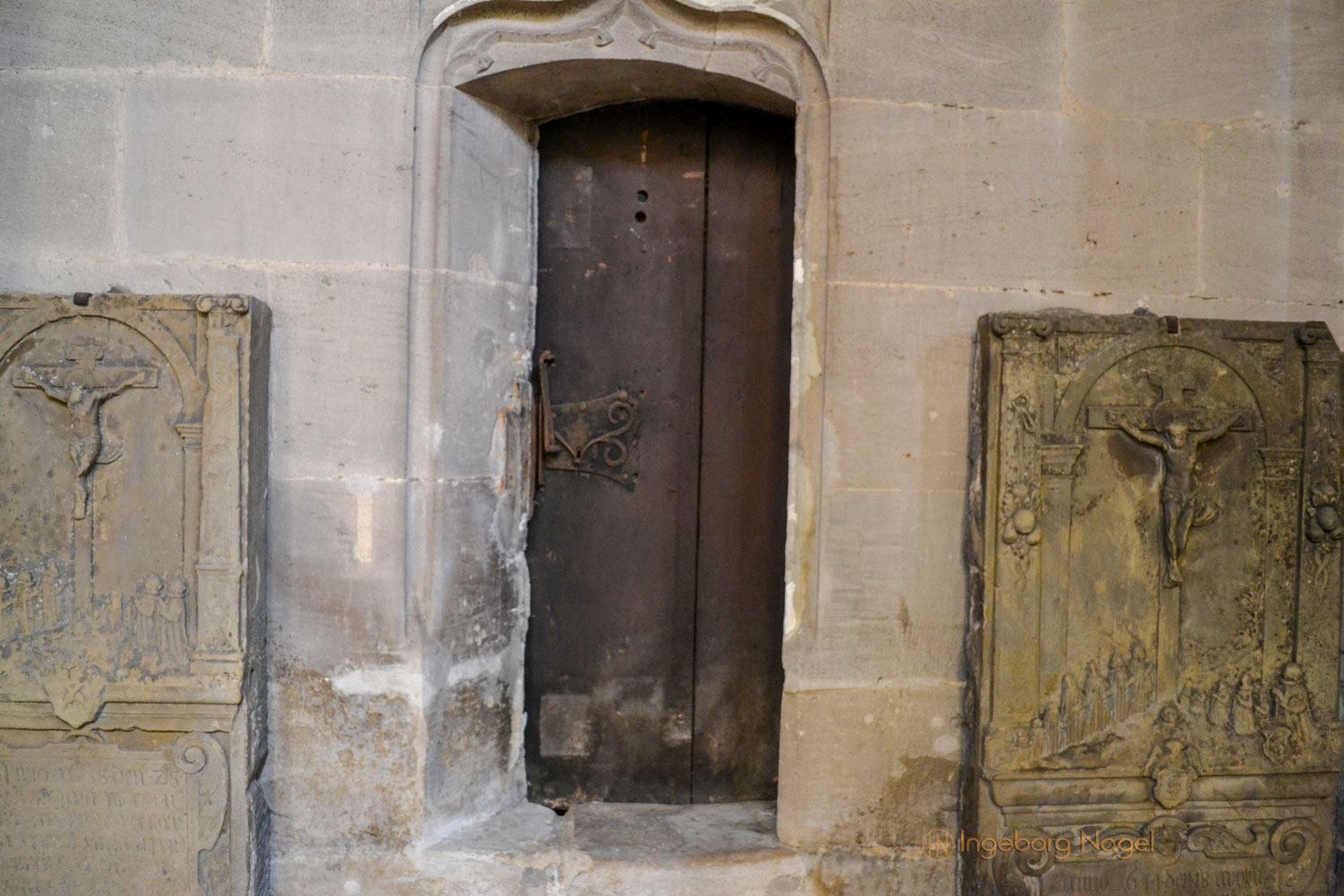 Den Rest an Schlusssteinen dürft ihr selber entdecken. Ich muss euch nämlich noch ein Schätzchen in der Kirche zeigen, das aufgrund dem Spender Sebald Schreyer, ja der vom Sebaldusaltar, entstanden ist -