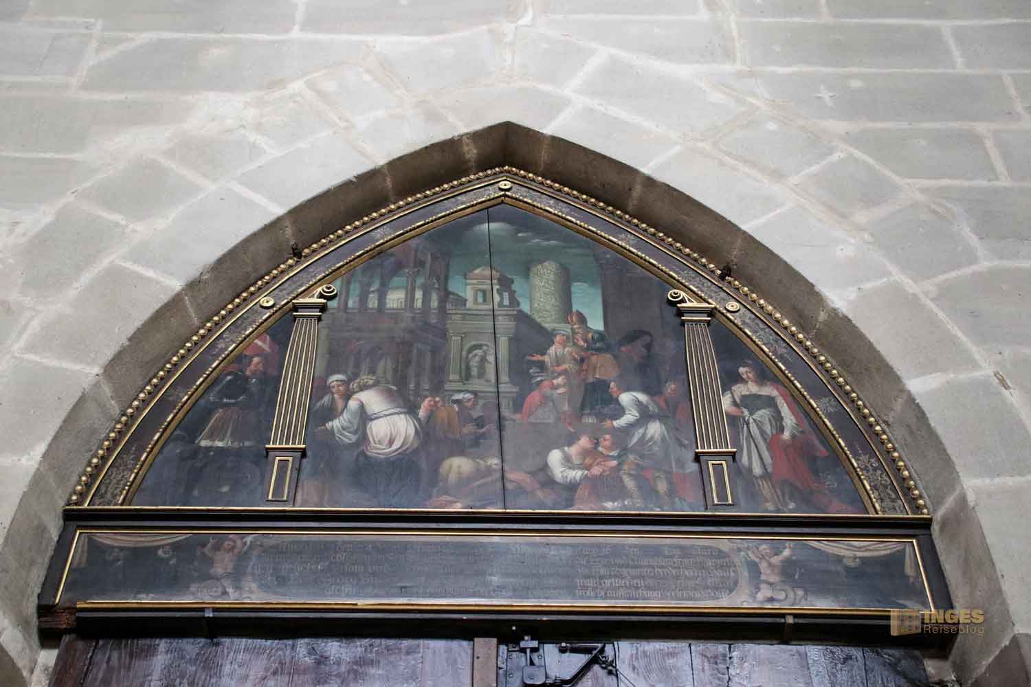 bietet viel zum Betrachten. Wurde ein paar Schritte weiter die Geburt Christi thematisiert, so ist es bei diesem Portal die Leidensgeschichte Christi, die mit seinem Tod endet.