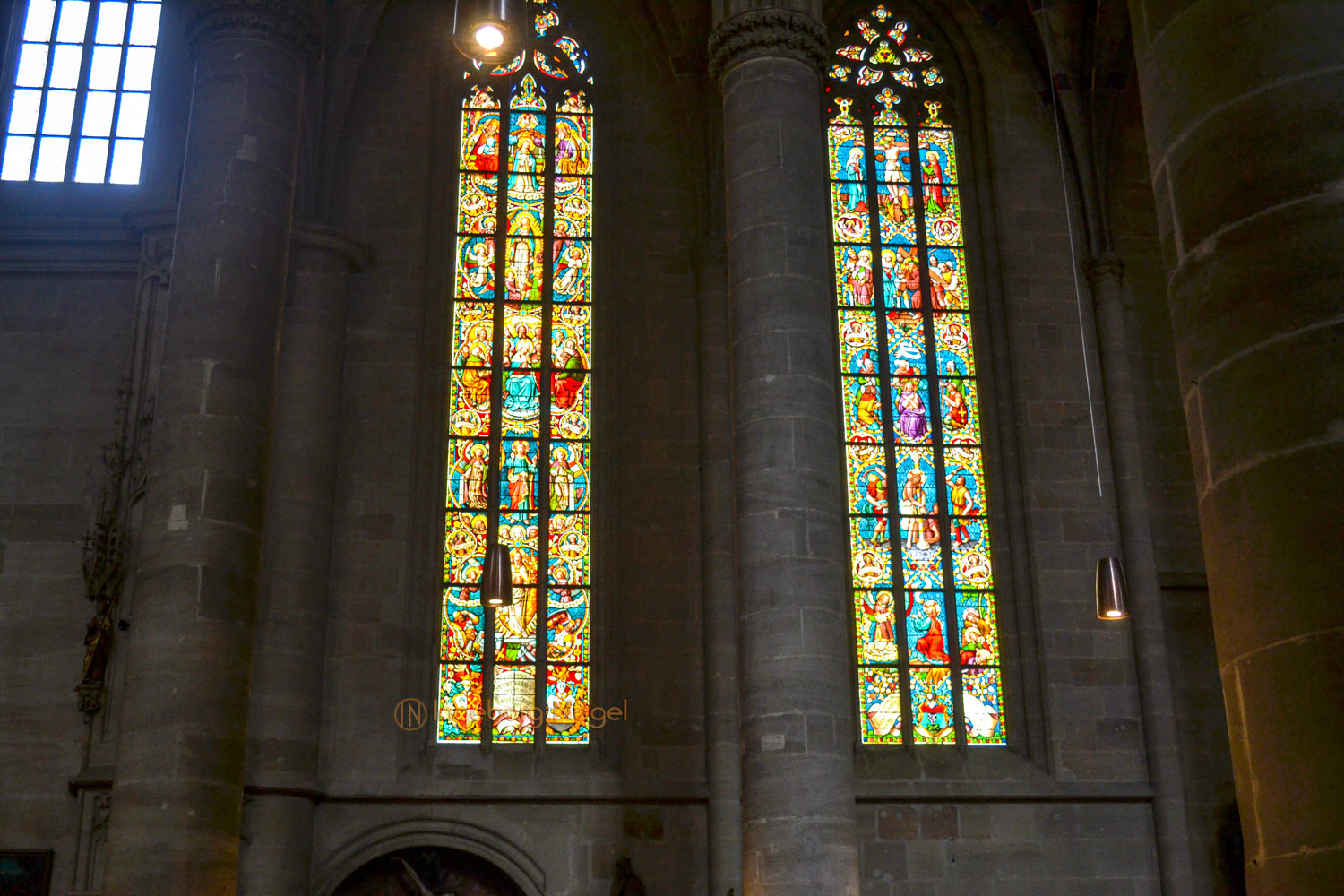 können es da mit gut aufnehmen. So wirklich viel weiß man über deren Entstehung nichts, 1497 wurden ja auch welche eingeschlagen um nach dem Turmeinsturz die eingeschlossenen Menschen rauszuholen. Teile von den Fenstern stammen wohl schon von 1506. Gesamt wurde aber das Münster so zwischen 1856 und 1893 mit neuen Fenstern ausgestattet. Bei deren Betrachtung spare ich mir jegliche Buchstaben und lass sie wortlos auf euch wirken.