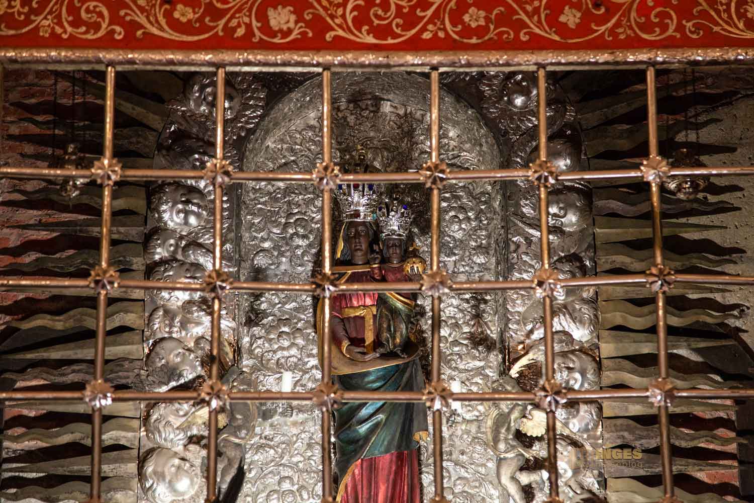 Hier in der freistehenden Loretokapelle im Prager Loreto, wurde auch die Innengestaltung dem Original im italienischen Loreto nachempfunden - eine Gitterwand trennt den Altar von den Gläubigen. Ich glaube, da braucht es zum Gnadenbild der Maria von Loreto keine weiteren Worte.