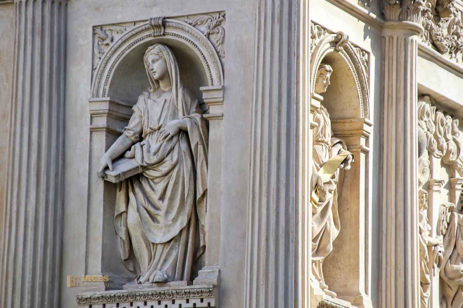 In den Nischen präsentieren sich all diejenigen, die die Geburt Christi vorhergesagt haben. Aber schön voneinander getrennt, denn oben stehen die Sibyllen, unten die Propheten. Zwei, die auf unterschiedliche Weise das gleiche Vorhersagen. Während die Propheten die Botschaft Gottes verkünden, sagen Sibyllen mit hellseherischen Eigenschaften voraus.