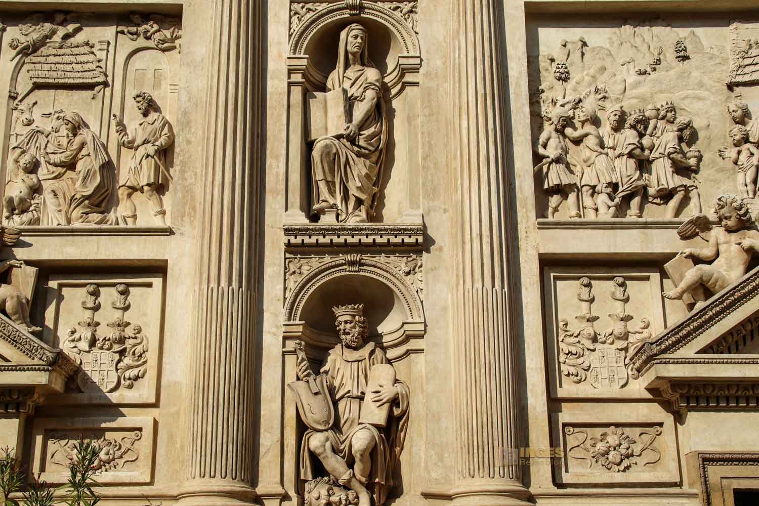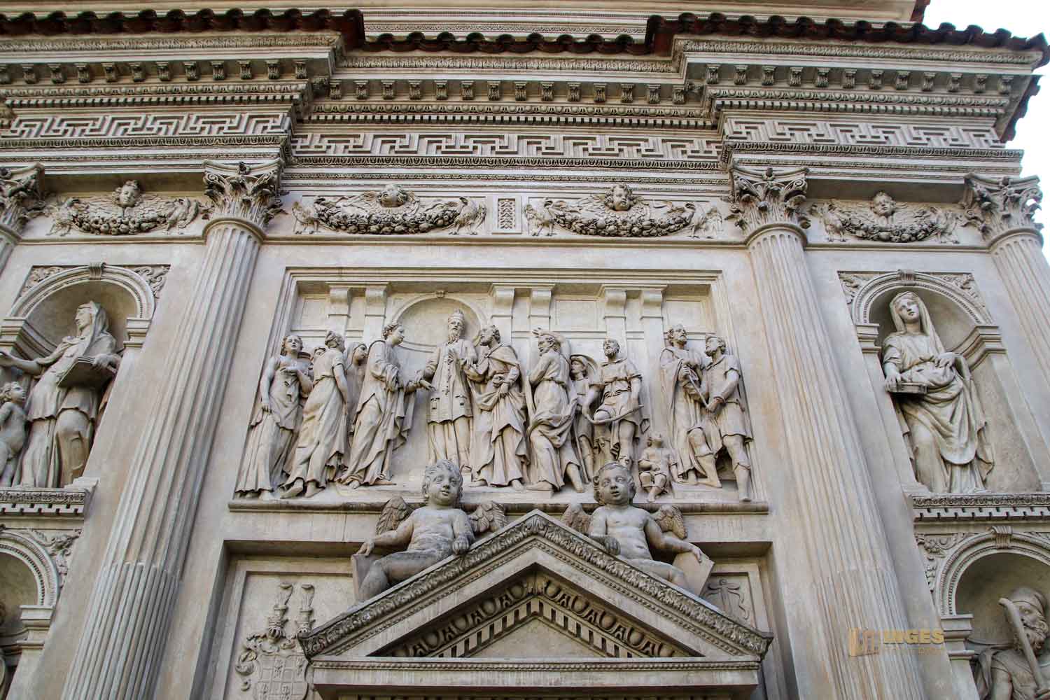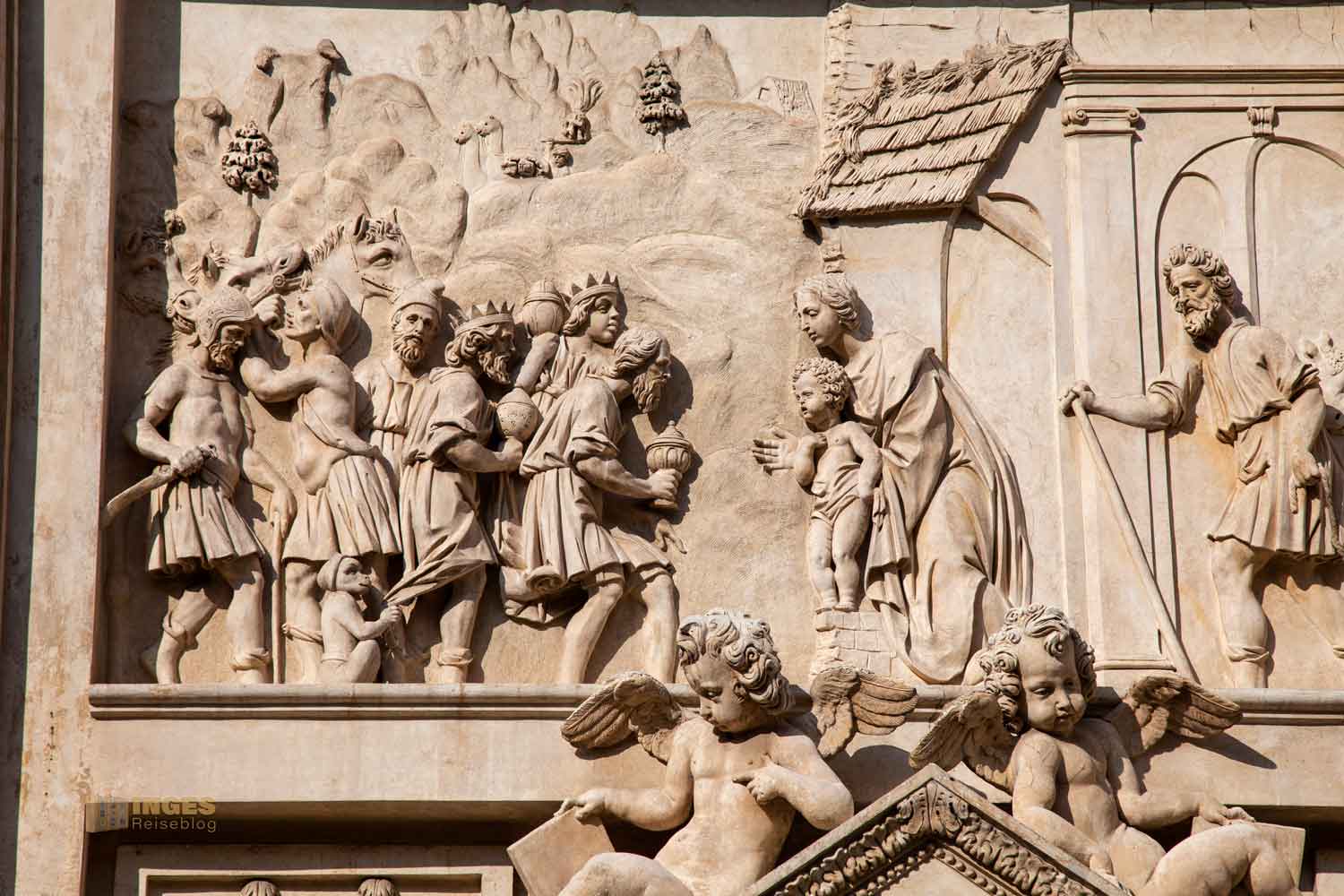 erzählt in Reliefen das Leben Marias und die Kindheit Jesu. Auf der Nordseite beginnt es mit der Geburt von Maria und ihrer Verlobung. An der Westfront wird die Verkündigung durch den Erzengel Gabriel dargestellt, dass Maria ein Kind bekommen wird. und wie Maria Elisabeth besucht und sich die kleine Familie zur Volkszählung nach Bethlehem begibt. Auf der Südseite wird Jesus geboren und durch die Hirten und den Heiligen Drei Königen angebetet. Auf der Ostseite wird der Tod Marias zum Thema und wie das Heilige Haus von Engeln versetzt wird. Wunderschöne Reliefs ....