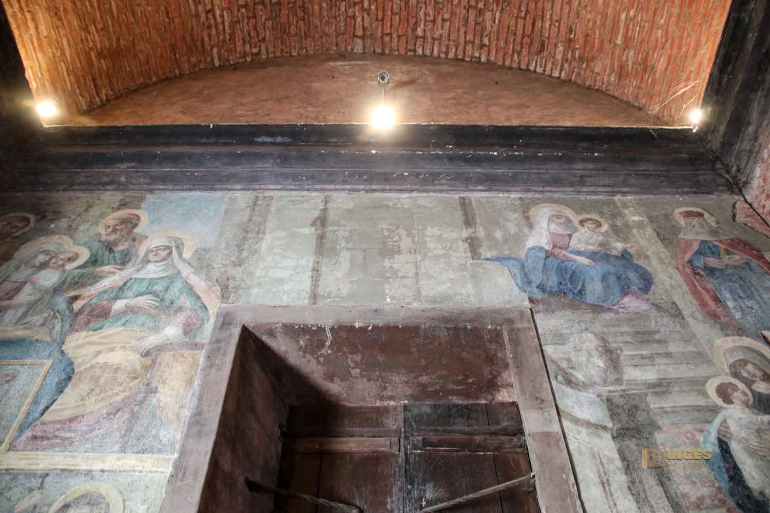 An den Wänden Malereien aus dem Leben von Maria.