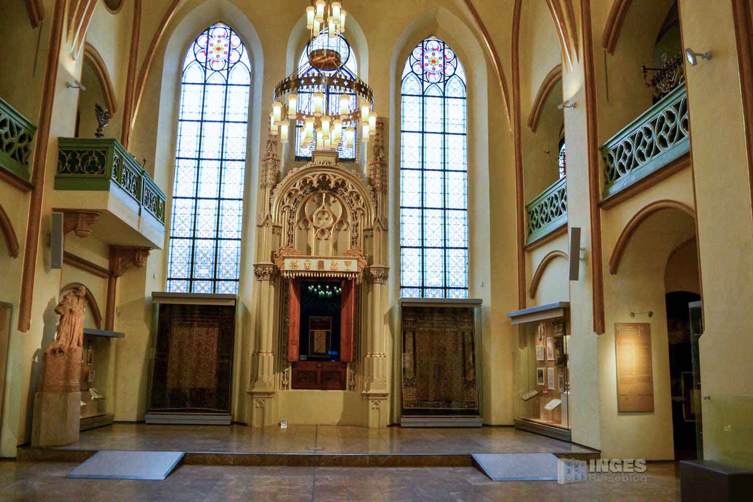 Ca. 6000 künsterlische Gegenstände sammelten die Nazis während des 2. Weltkrieges aus 153 böhmischen und mährischen Synagogen zusammen. Sie wollten damit ein Gegenjudenmuseum errichten. 1950 wurde die Sammlung jedoch dem jüdischen Staatsmuseum übergeben. Nach Umbauten und Renovierungen ist jetzt die Ausstellung zu sehen.