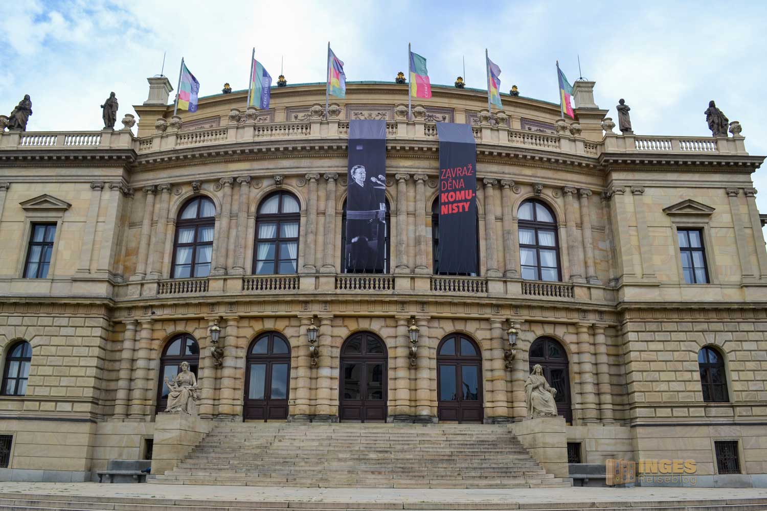 hat tatsächlich etwas mit Musik zu tun. Von 1876-1884 ist es im Auftrag der Böhmischen Sparkassen errichtet worden. Die scheinbare Ähnlichkeit mit der Semperoper in Dresden ist mit der gerundeten Fassade gewollt. Und auch das Konzept glich dem der Semperoper. Es sollte von Anfang an ein Haus der Künstler sein, das die Musik pflegen und die Bildende Künste fördern soll. Der Schirmherr des Gebäudes, das im Stil der Neorenaissance errichtet wurde, war Kronprinz Rudolf. Seine Eltern sind uns bestimmt allen bekannt: er war der einzige Sohn von Kaiser Franz Joseph I. und Kaiser Elisabeth (Sissi). Staatsrechtlich war er der Kronprinz des kaiserlichen Österreich und königlichen Ungarn.