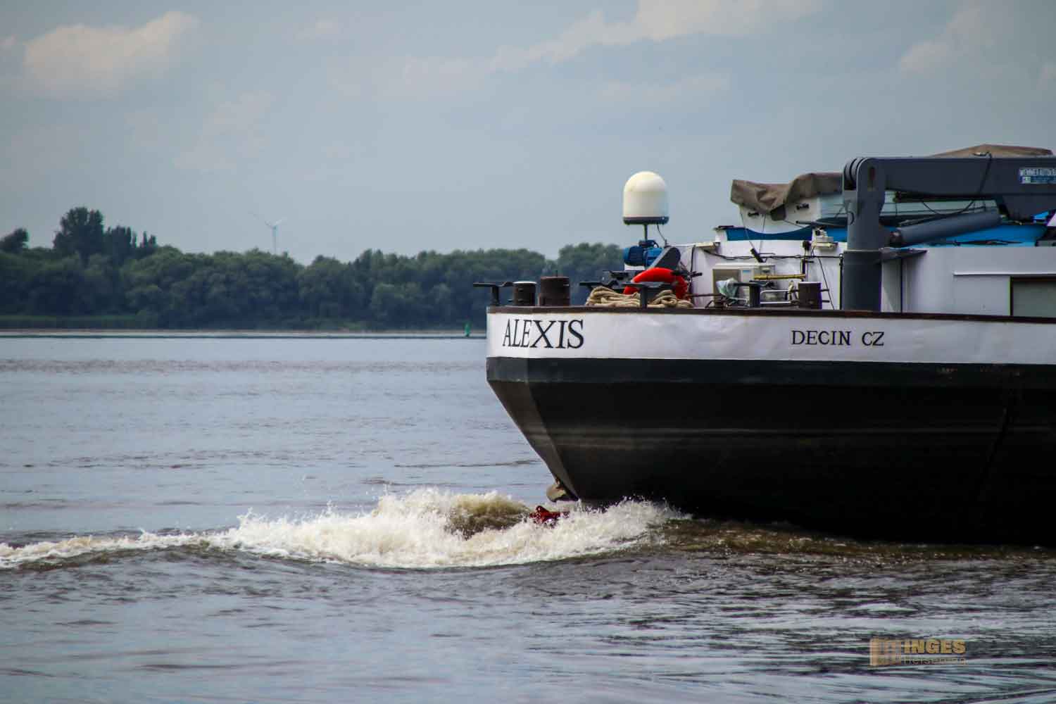 Nach einiger Zeit sahen wir, dass sich dieses 'keine Ahnung' elbabwärts bewegte. Immer langsamer, aber stetig kam es auf uns zu. Nein, ein Tank war das ganz sicher nicht 😀 Wow, was für