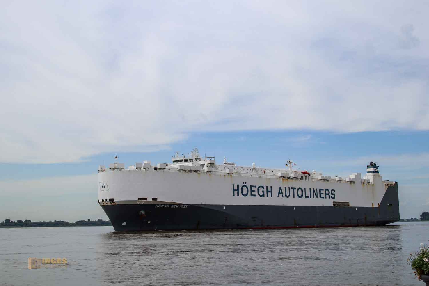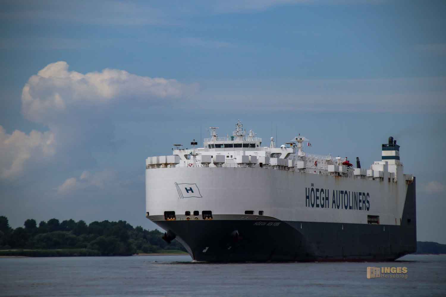 ein Schiffsriese auf der Elbe bei Blankenese
