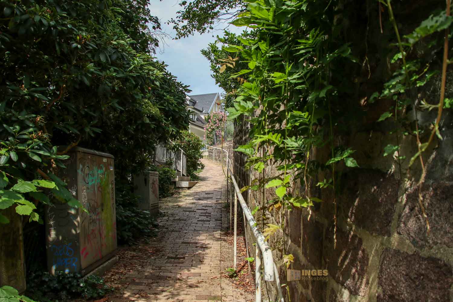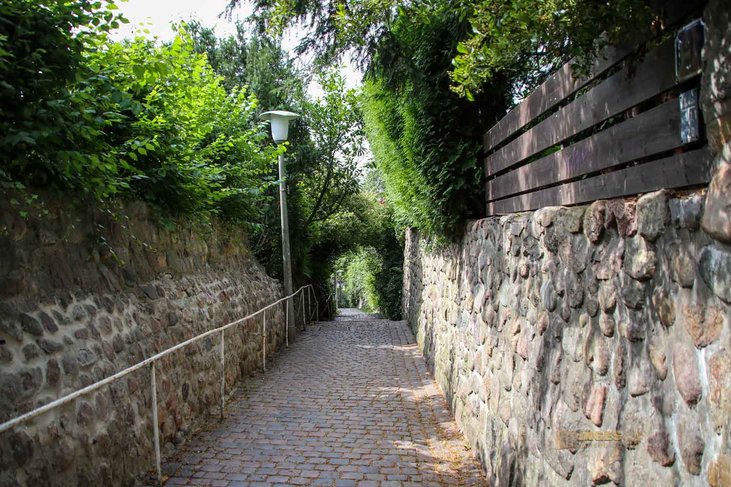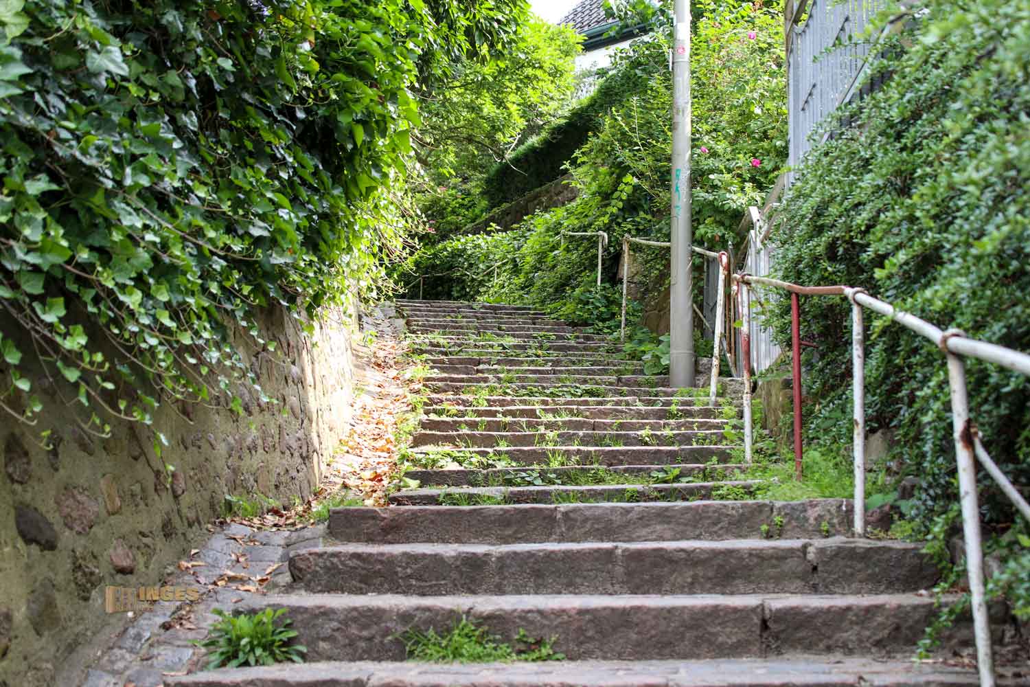 das ihr auf mehreren Wegen mit den rund 5.000 Treppen hinunter zur Elbe durchqueren könnt. Durch kleine Verbindungswege kommt ihr zur nächsten Treppe.