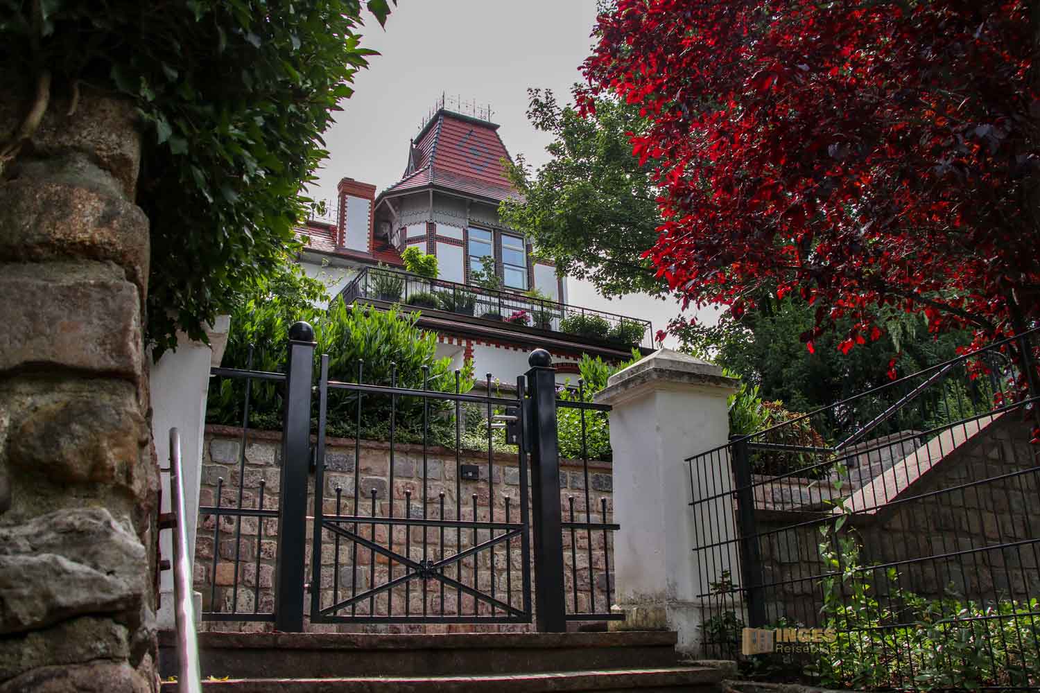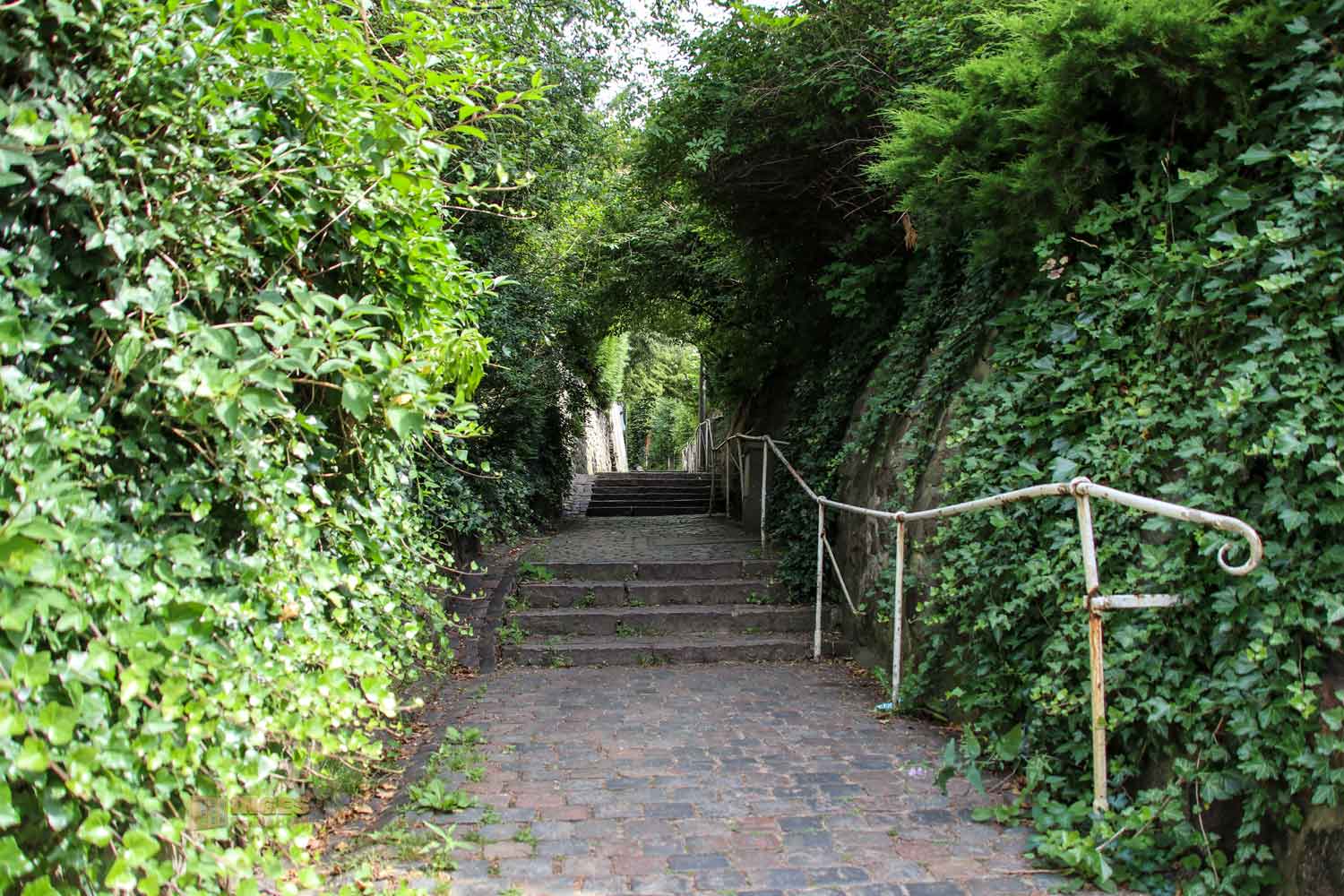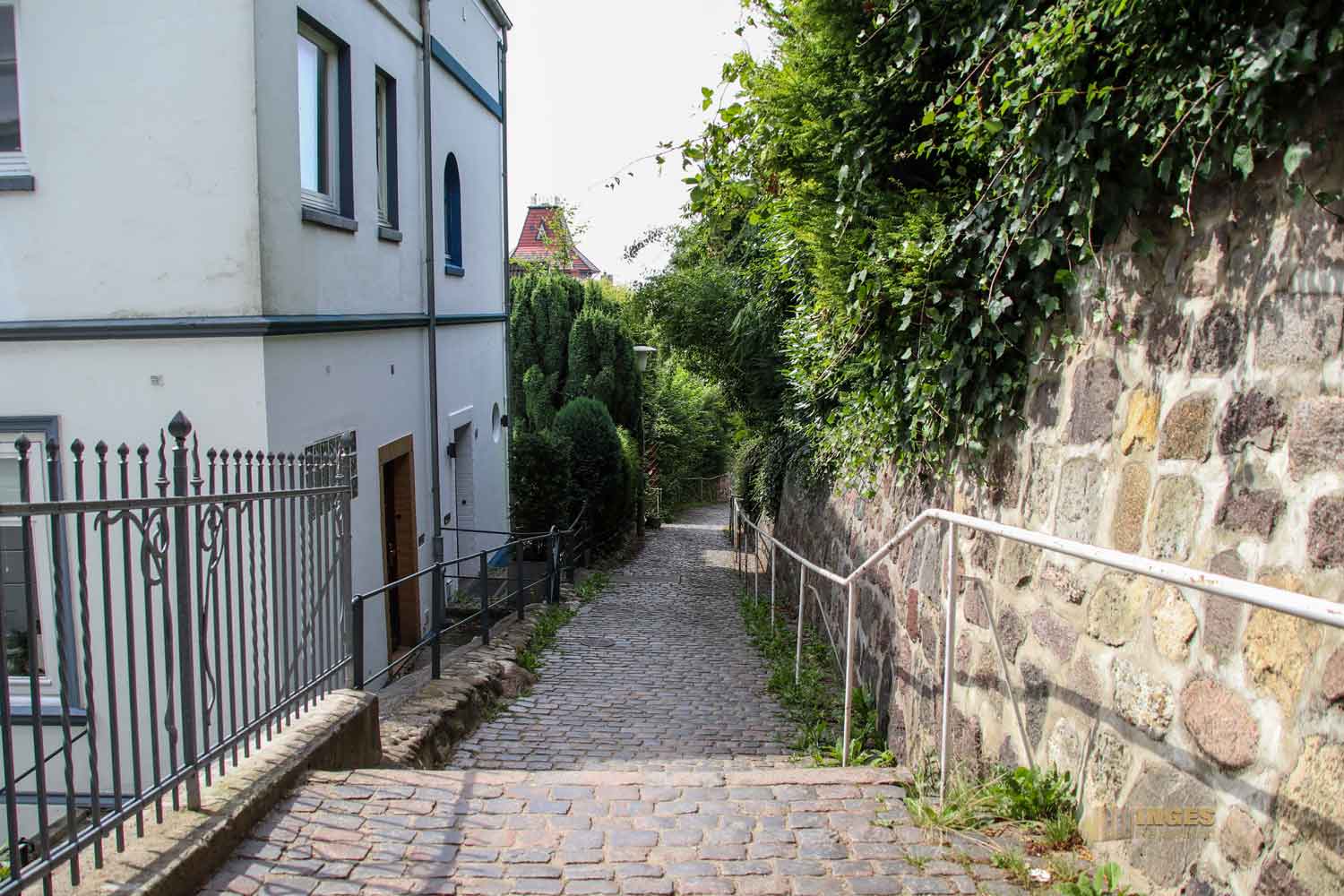 das ihr auf mehreren Wegen mit den rund 5.000 Treppen hinunter zur Elbe durchqueren könnt. Durch kleine Verbindungswege kommt ihr zur nächsten Treppe.