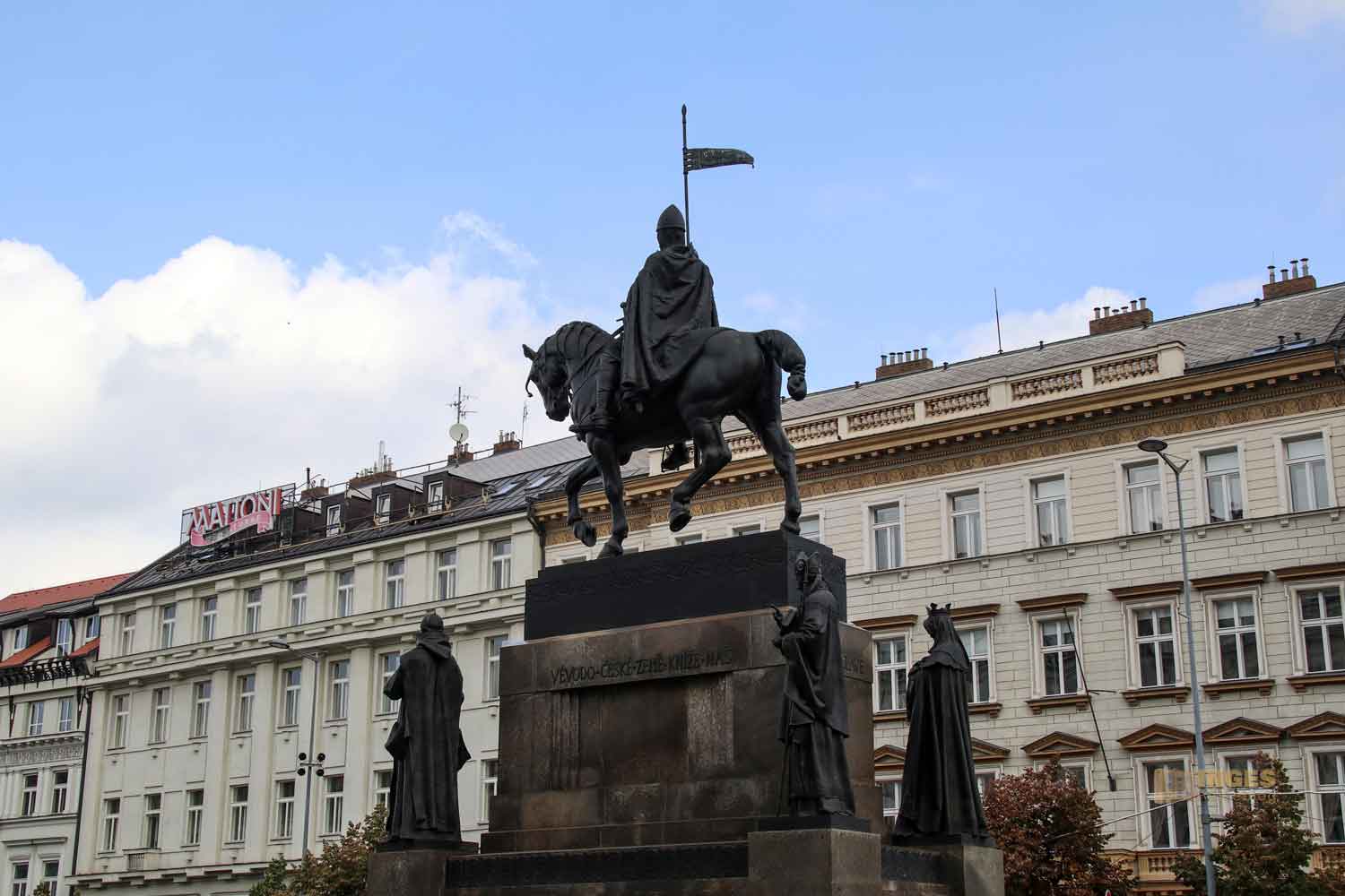 Hier auf dem Wenzelsplatz braucht man mit dem Reiterdenkmal nicht sehr lange rätseln - sofern man sich etwas mit den Landespatronen des Landes auskennt. Denn hier vereinen sich gleich einige - hoch oben zu Ross der Hl. Wenzel.