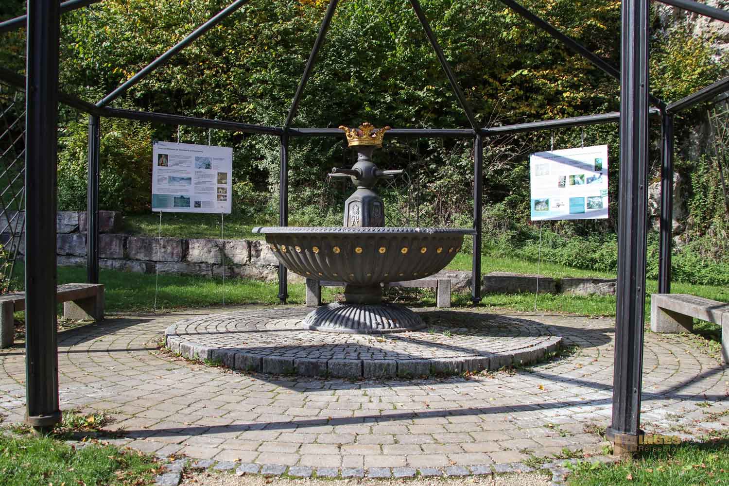 lädt zum Verweilen ein und ist erholend und informativ zugleich. Ja, man kann der Eisengewinnung hier in Königsbronn wirklich eine Krone aufsetzen - so wie am Brunnen mit seinen vielen Informationstafeln.