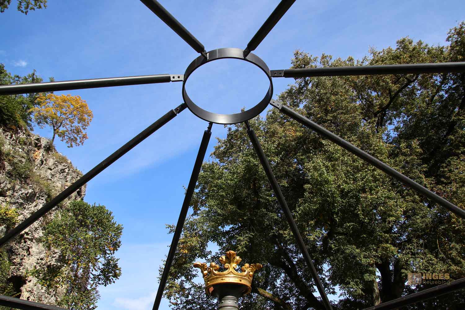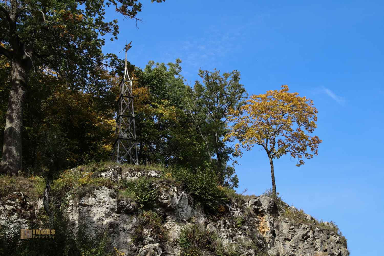 Sehe ich da richtig? Da steht der Eifelturm? Ich wurde ja in Prag eines besseren belehrt, dass viele kleine Nachfolger des großen Eifelturms die übrige Welt erobern. Gegenüber der Prager Burg auf dem Berg Petrin steht eines der Wahrzeichen von Prag - der kleine Bruder des Eifelturms. Wir wollten ihn jetzt bei unserer Herbstreise nach Prag ausgiebig besichtigen. Aber der kleine Fiesling Corona meinte - pfff, nix Prag, du kannst den Eifelturm in deiner Heimat entdecken. Und dieser kleine Nachbau auf dem Schmiedefelsen über den Masselhäusern ist nicht der einzige Nachbau in Königsbronn.