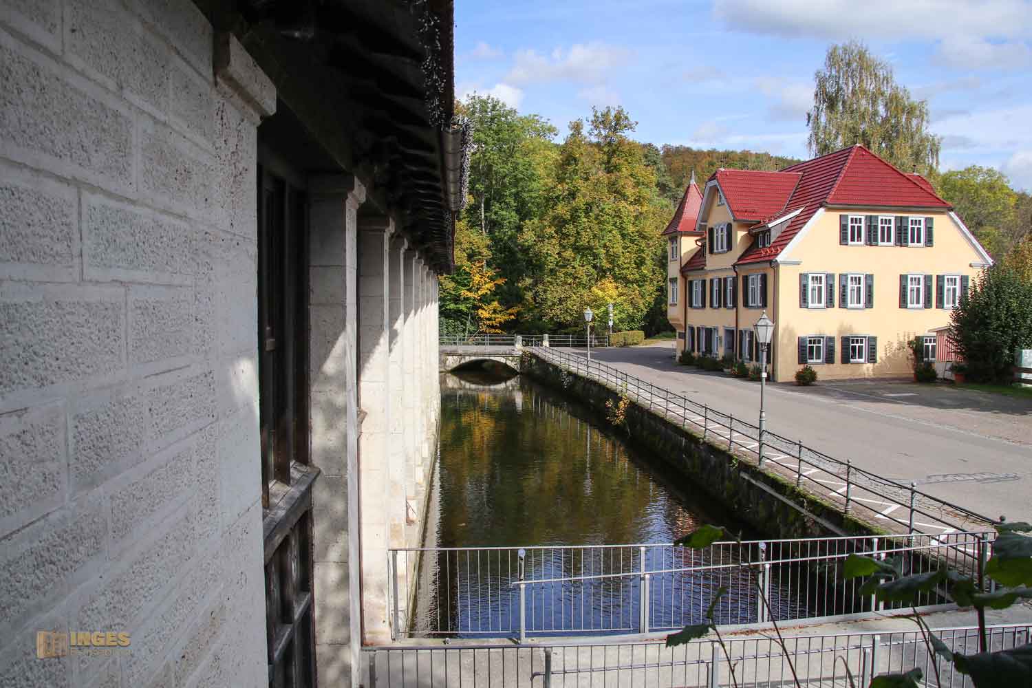 welches das Wahrzeichen der Gemeinde ist. 1775 wurde es von Johann Georg Blezinger, den ihr als den Pächter der Eisenwerke in Königsbronn weiter oben schon kennengelernt habt, umgebaut. Arm war der Mann wahrlich nicht, so wie er den Bau mit einer spätbarocken Fassade erstellen ließ. Wenn Mauern erzählen könnten, dann wäre vermutlich dieses Haus ein kleiner Wasserfall, mit dem was es schon erlebt hat.