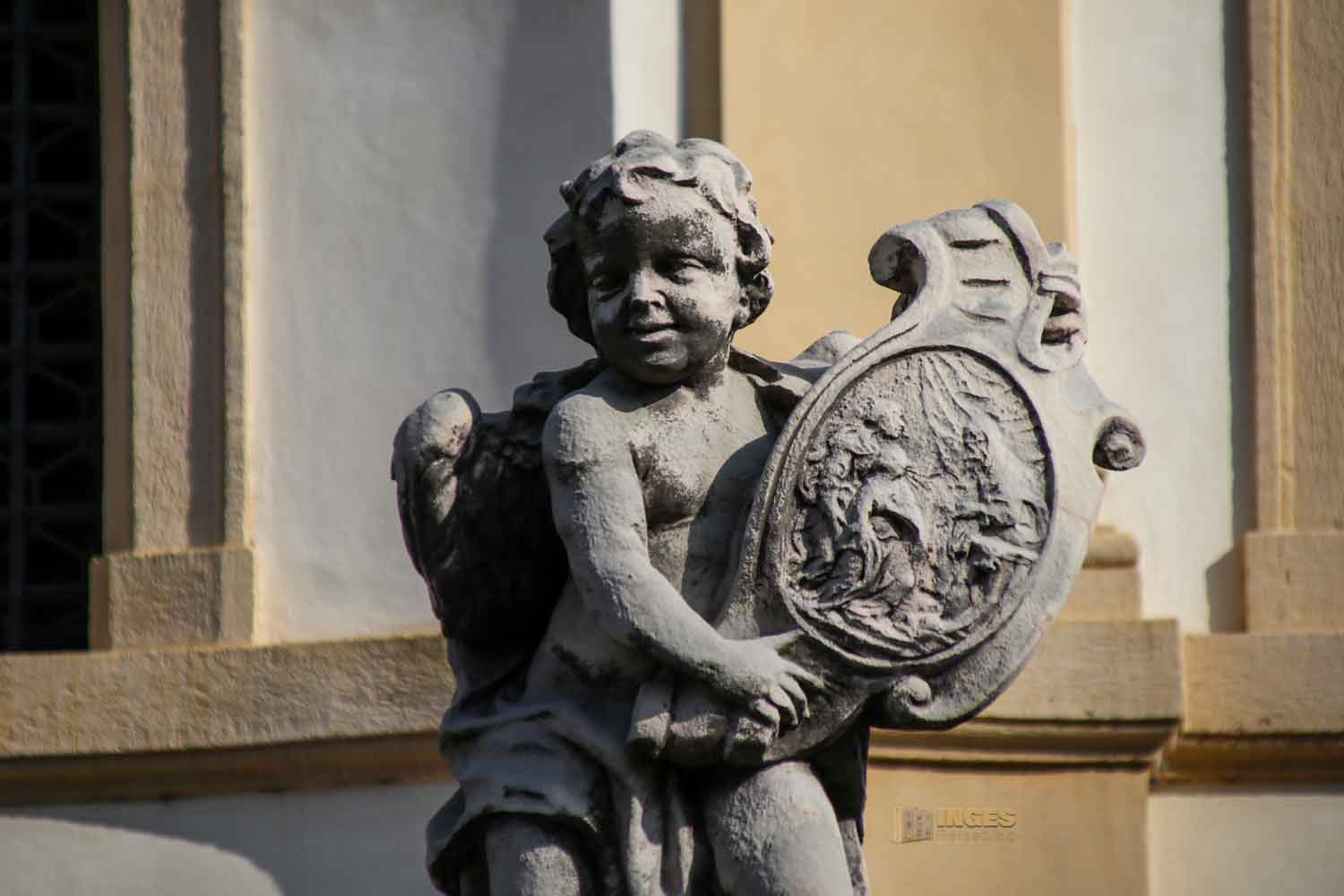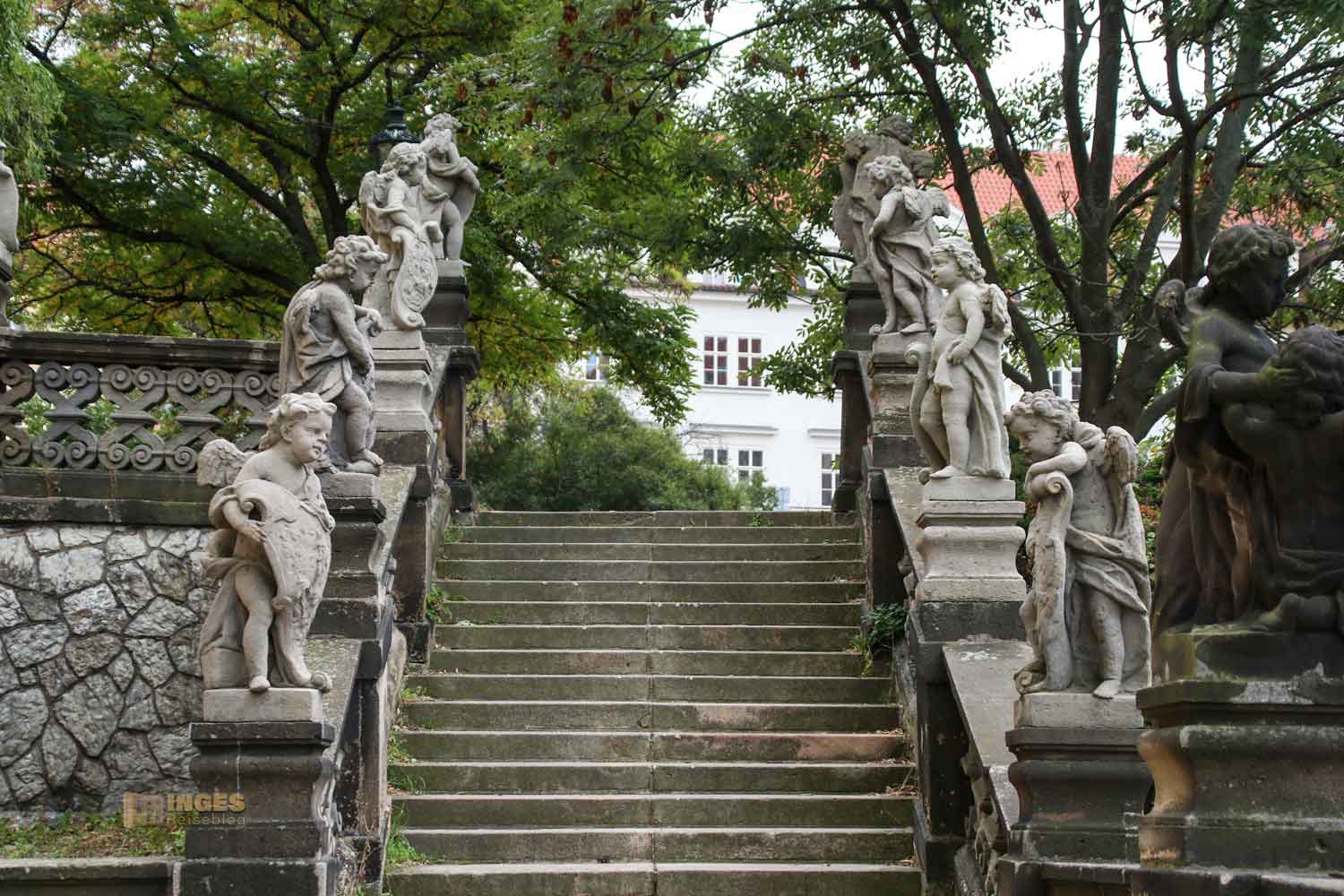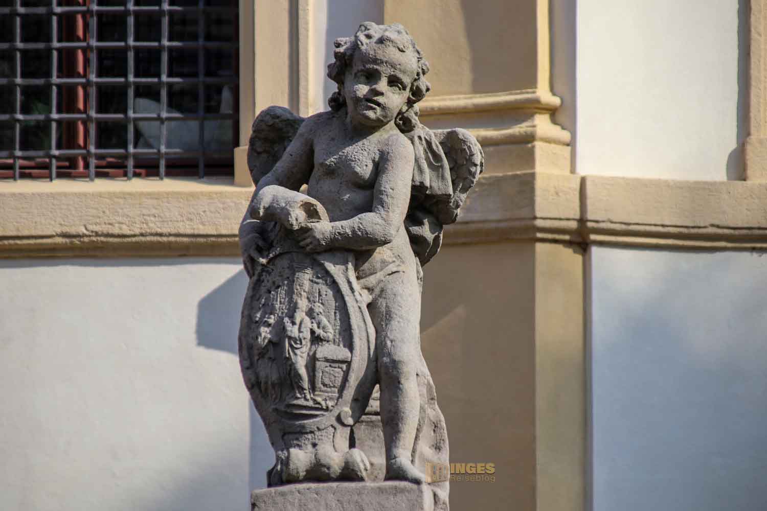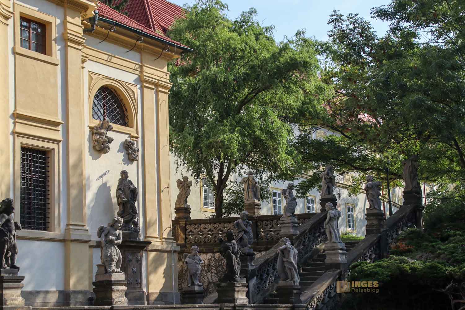 wurden etwa ab 1725 von dem Prager Bildhauer Andreas Philipp Quitainer gefertigt. Er war auf dem Hradschin nicht nur für das Prager Loreto tätig, sondern auch für das Kloster Strahov. Über 20 Engelfiguren und andere Statuen sind da zu bewundern, teilweise aber nicht mehr im Original. Was meiner Freude natürlich keinen Abbruch tat 😉
