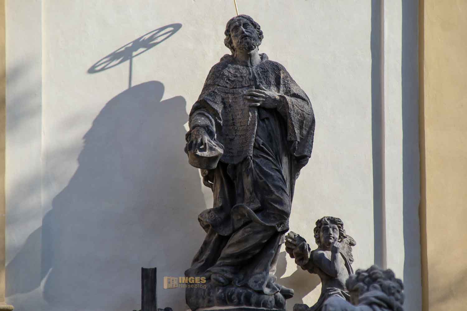 Viele der anderen 'Herrschaften' kommen mir bekannt vor - z.B. der hl. Franz v. Assisi, der hl. Antonius von Padua und er darf natürlich auch nicht fehlen: mein geliebter hl. Johannes Nepomuck. Ihn habe ich bei unserem Aufenthalt im Juni 2020 in mein Herz geschlossen und fand noch andere Verehrer von ihm in meinem Schwabenländle. In verschiedenen anderen Berichten hier auf dem Blog könnt ihr mehr über sein Leben und seinen Tod erfahren. Einige Statuen wurden vom Hofbildhauer Johann Friedrich Kohl geschaffen, von dem ihr weitere Statuen auf der Karlsbrücke bewundern könnt.