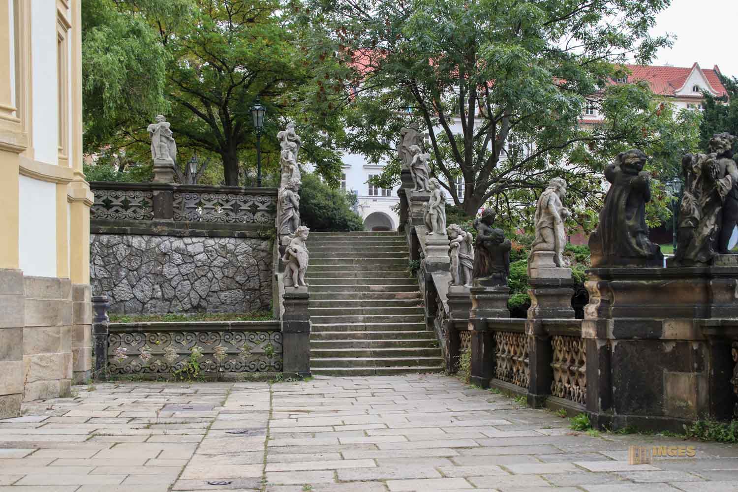 den wir bei unserem Besuch auf dem Berg Petřín, und dort vom Aussichtsturm, dem kleinen Eifelturm, bereits entdeckt haben. Jetzt standen wir direkt vor dem barocken Gebäudekomplex, und am liebsten hätte ich den ein bisschen geschrumpft, dass er in Gänze von meiner 'Emma' aufgenommen werden konnte. Hinterher denke ich mir, wärste mal die 'paar' Stufen hinauf zum Außenministerium gelaufen, vielleicht hätte es von da geklappt. Aber nachdem wir ja bereits Kloster Strahov hinter uns hatten, war ich jetzt ein bisschen sparsam mit meinen Schritten, Schwäbin halt 😉