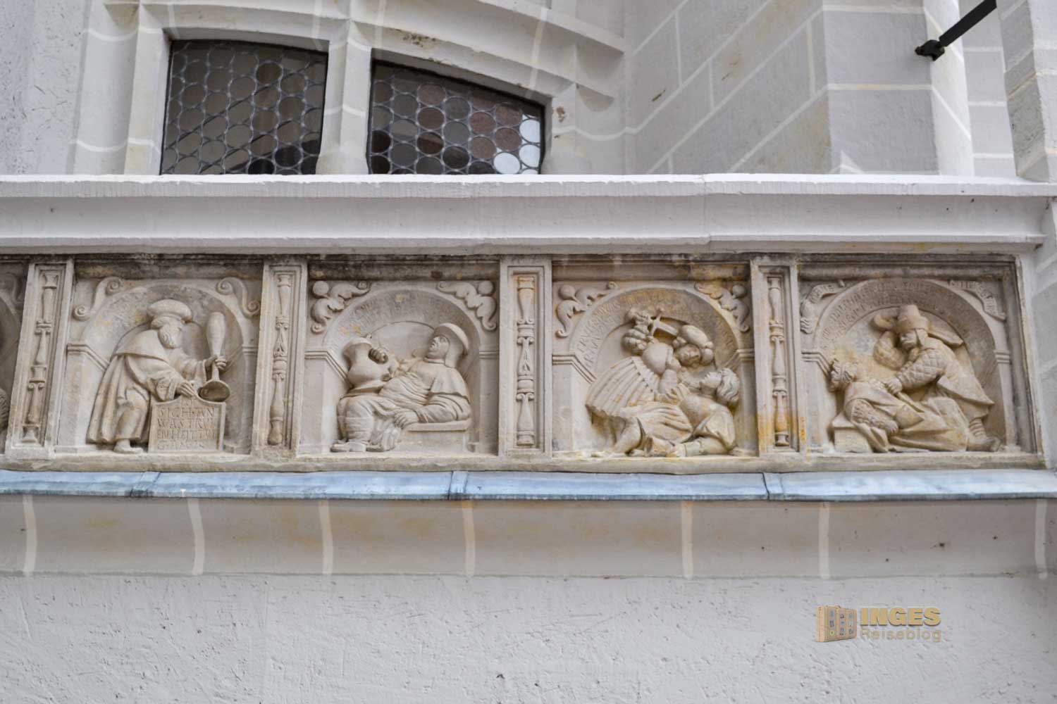Reisen bedeutet bei mir/uns, dass ich mich im Vorfeld über unsere Besichtigungsziele informiere; was könnte uns gefallen, was muss man unbedingt gesehen haben - und - gibt es vielleicht auch Sightseeing Sparkarten. Schließlich geht ein Schwabenmädel auf Reisen!! Bei den Recherchen bin ich auf die "Schlösserland Sachsen" Karte gestoßen, das richtige für uns 🙂 Dazu kann man sie sich bequem aufs Handy laden, mit 10 Tagen Gültigkeit und freien Eintritt ins ganz vielen Schlössern, Burgen und Gärten in ganz Sachsen. Da es uns zeitlich nicht mehr gereicht hat, die Karten per Post zustellen zu lassen und in Zeiten von Apps, die ja kein Problem darstellen und sich easy laden lassen, war es jetzt an der Zeit diese App samt Schlösserland-Karte zu installieren und kaufen. Ratz fatz geht anders, gefühlte tausend Angaben und Wiederholungen sind notwendig, bevor wir uns dann tatsächlich in den Kassenbereich bewegen konnten. Diese Arbeit habe ich gerne meinem Mann überlassen, Zeit für mich, mir die kleinen Details der Fassade anzuschauen.
