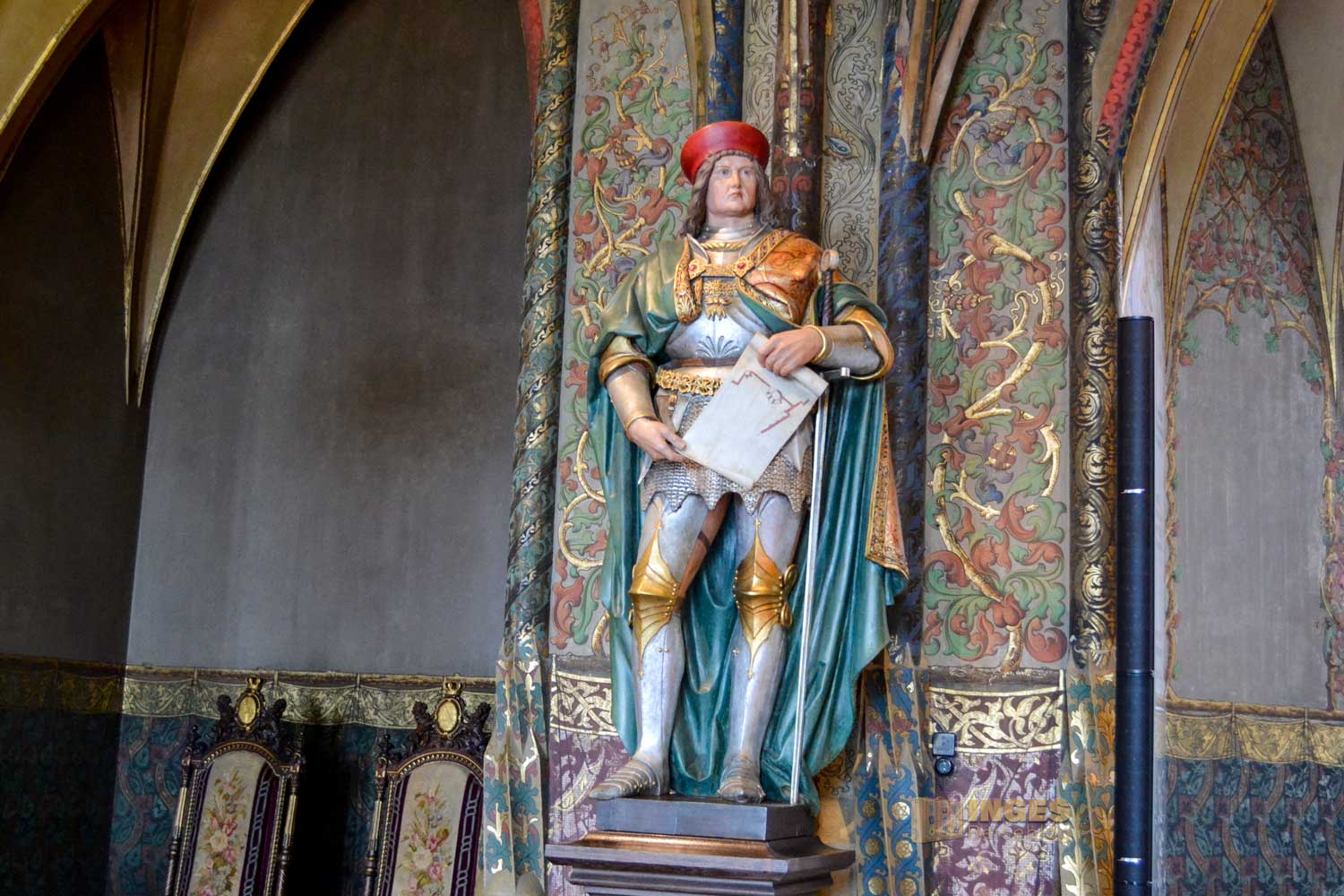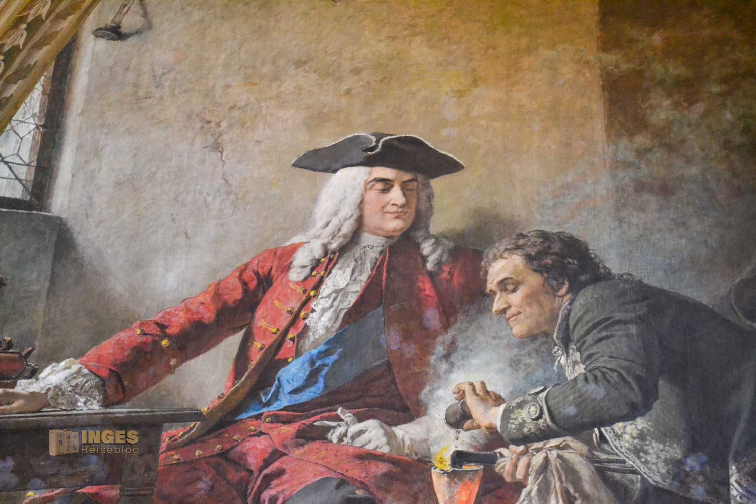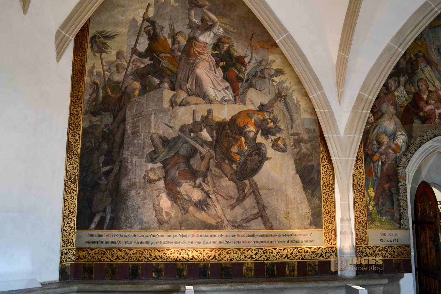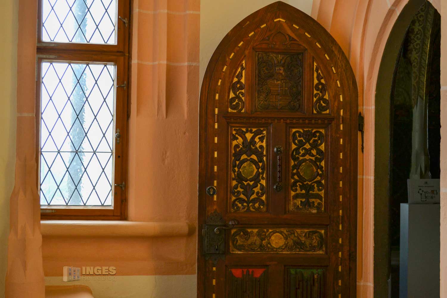 Wieder das 'kleine' Besondere, der Raum wird auch als Standesamt genutzt. Und was würde als Gemälde in diesen Raum besser passen, wie die Hochzeit zwischen Albrecht und seiner Braut Zedena. Wunderschön auch die kleinen Details an den Möbeln ....