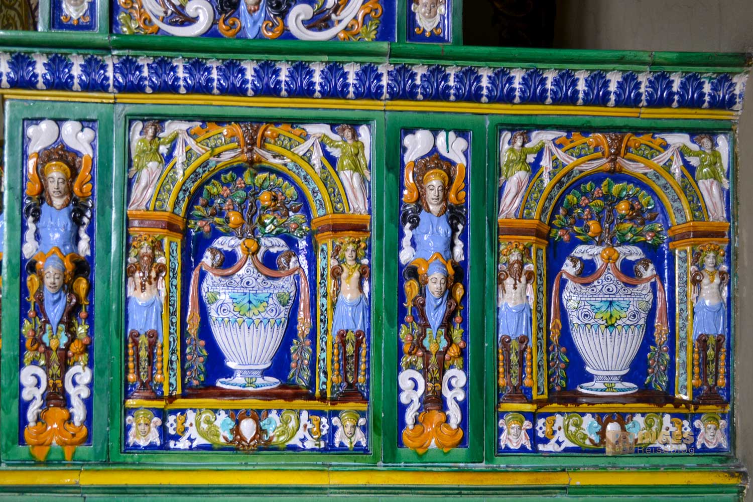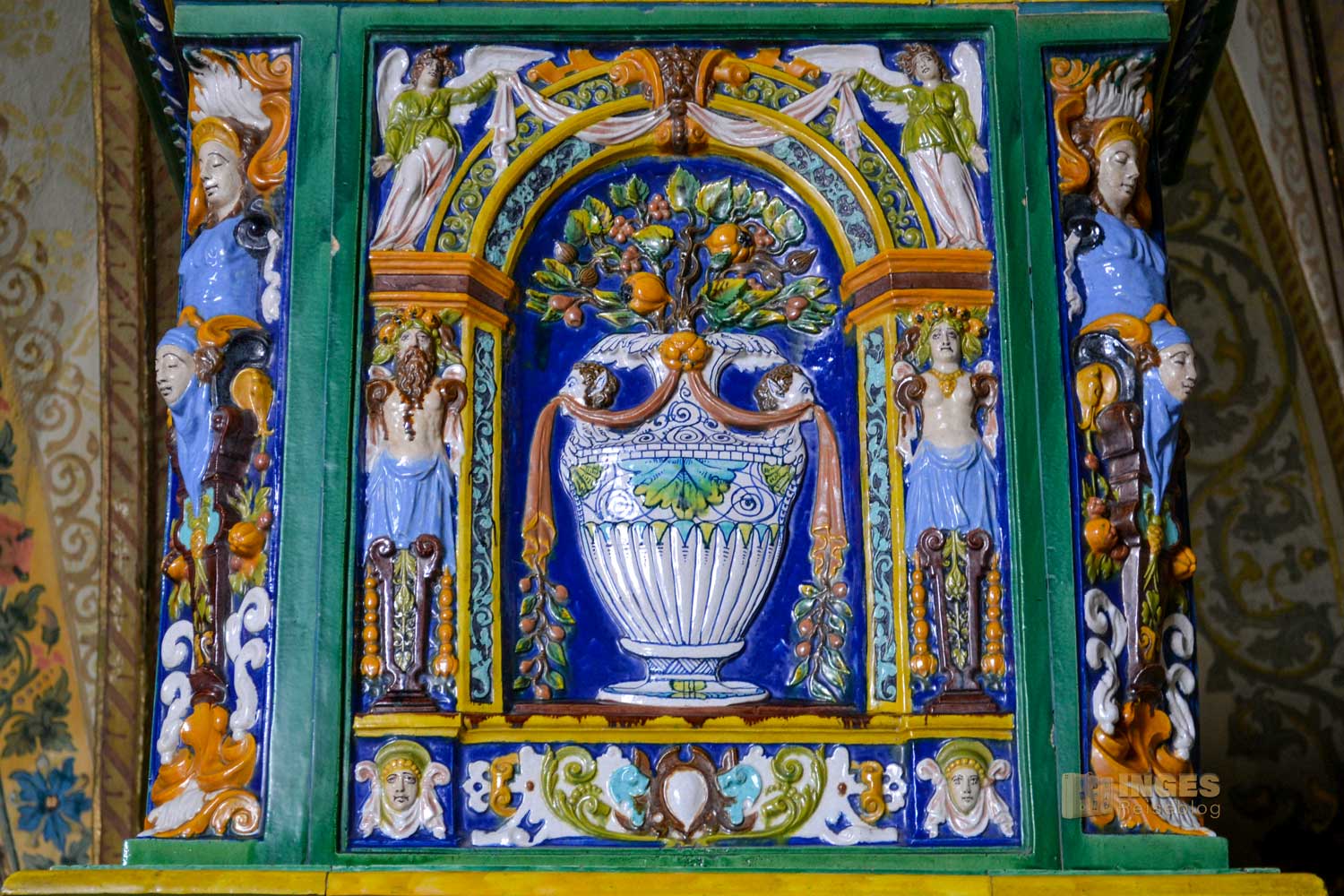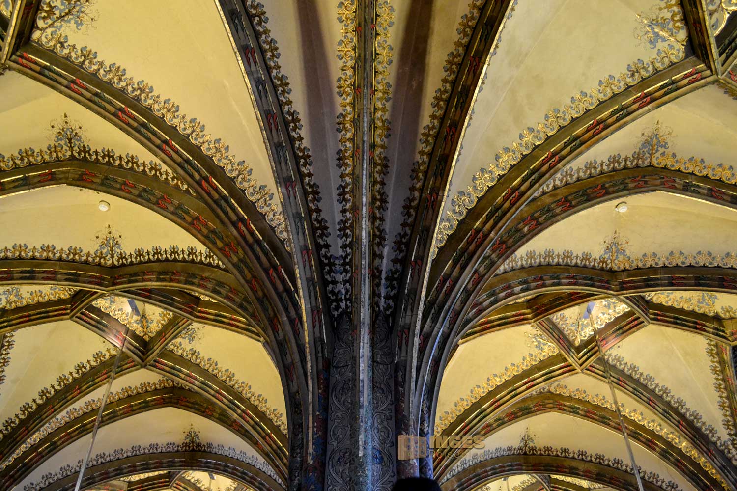 Der Erschaffer dieses Schlosses hatte schon ein hochkomplexes Raumprogramm umzusetzen. Im ersten Obergeschoss betritt man zunächst den großen Saal. Zweischiffig ist er angelegt, großzügig an beiden Seiten mit hohen Fenstern, viele Säulen und ein aufwändiges Zellengewölbe. Und - wie schon geschrieben mit riesigen Gemälden. Lasst es auf euch wirken ....