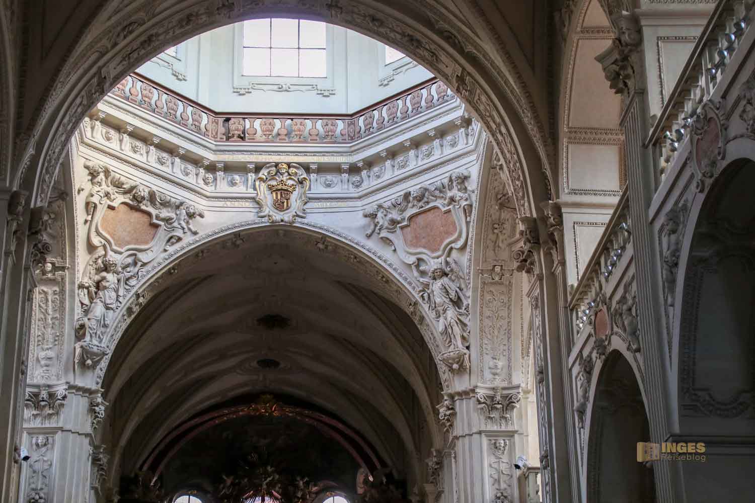 Es wurde lang an der Kirche gefeilt und gebaut, bis sie dann 1653 als fertig bezeichnet werden konnte. Emporen wurden noch eingezogen und eine Kuppel bekam die Kirche auch. Aber erst viel später kam noch ein Deckengemälde über dem Hauptaltar dazu.