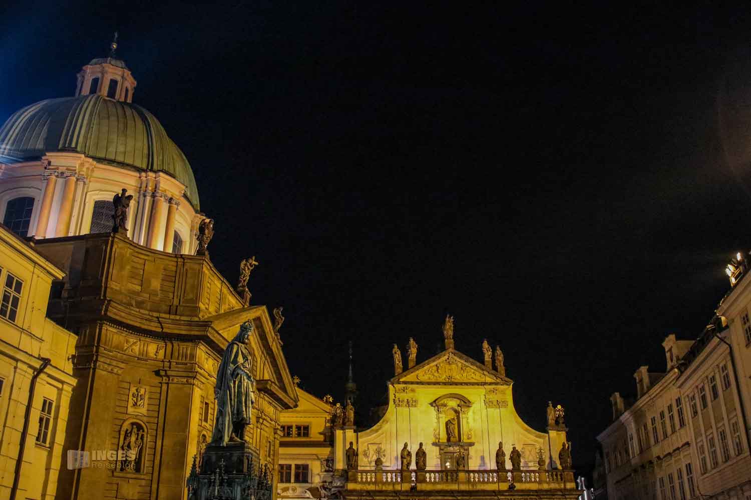 Ist das nicht ein herrlicher Anblick? Die St. Salvator Kirche wunderschön beleuchtet und 'mein' Karl IV. auf dem Kreuzherrenplatz vor der Kreuzherrenkirche (oder der Kirche des Hl. Franziskus).