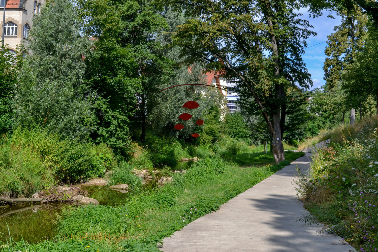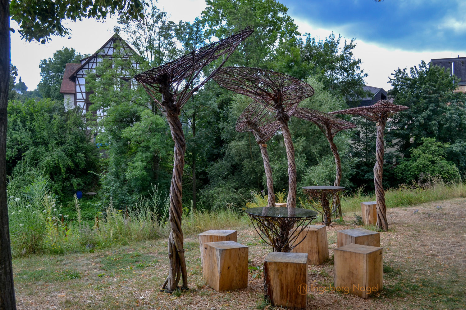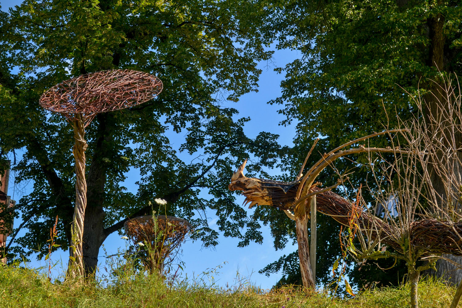 Im Rahmen der Remstalgartenschau 2019 werden unglaublich schöne Flechtkunstwerke und ein Wolkengarten entlang der Allee gezeigt. 2016 wurde das Flechthandwerk in Deutschland zum immateriellen Kulturerbe ernannt, für den Gartenschauplaner der Remstalgartenschau ein Grund, eines der ältesten handwerklichen Tätigkeiten auch in Schwäbisch Gmünd zu präsentieren. Wie ich finde, sehr gelungen von den Künstlern. Und egal von welcher Ebene man sie betrachtet - einfach schön.