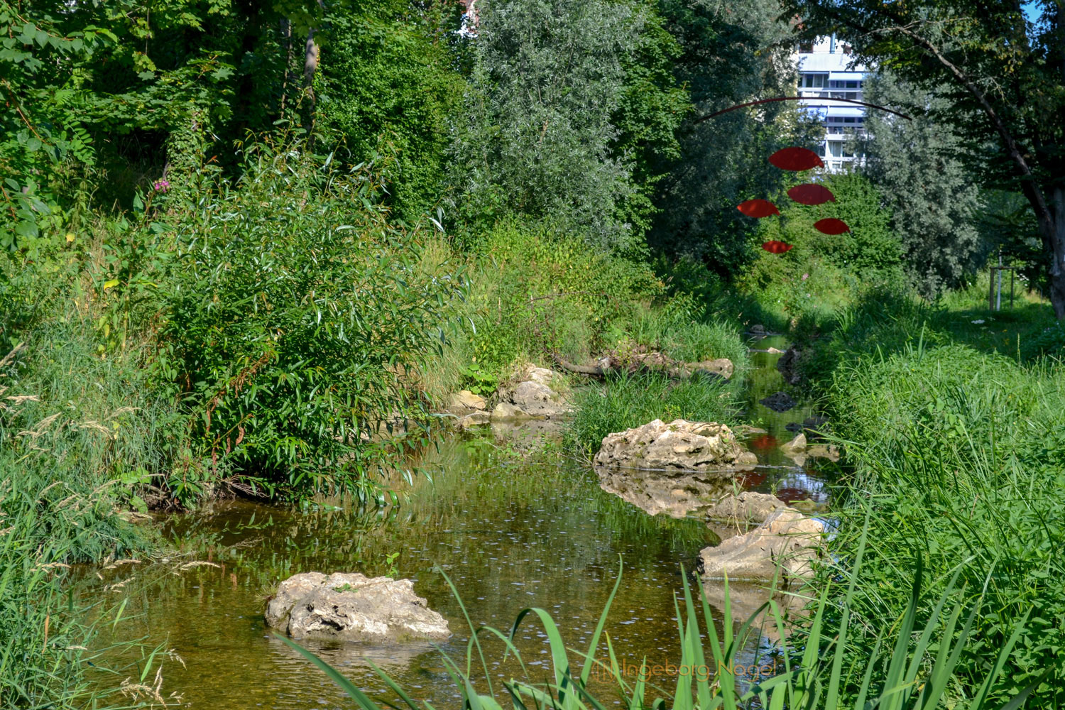 Hier am 'Käsewürfele' fließen Josefsbach und Rems zusammen und ergeben seit 2014 den Remsstrand, immer wieder Platz für Veranstaltungen. Hier abends an der Rems sitzen, vielleicht der Musik einer Veranstaltung lauschen und dem fließen des Wassers zuschauen ....