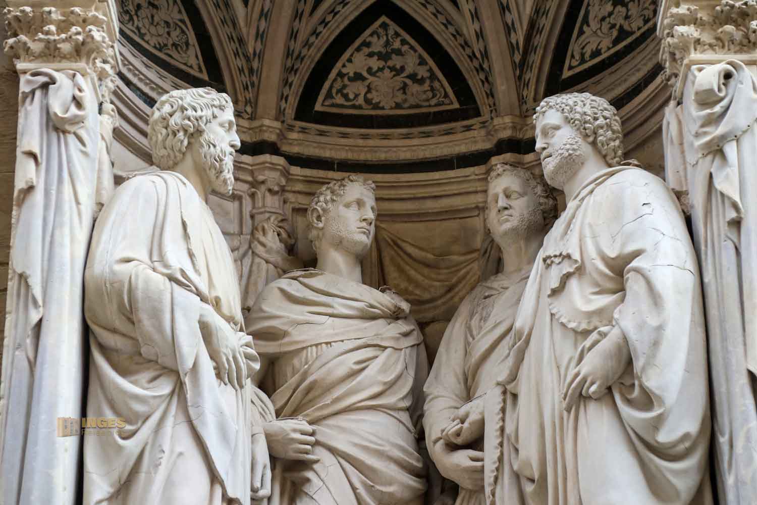 Schauen wir uns die Skulpturen mal genauer an, beginnend an der Ecke Via dei Calzaiuoli zur Via dei Lamberti.