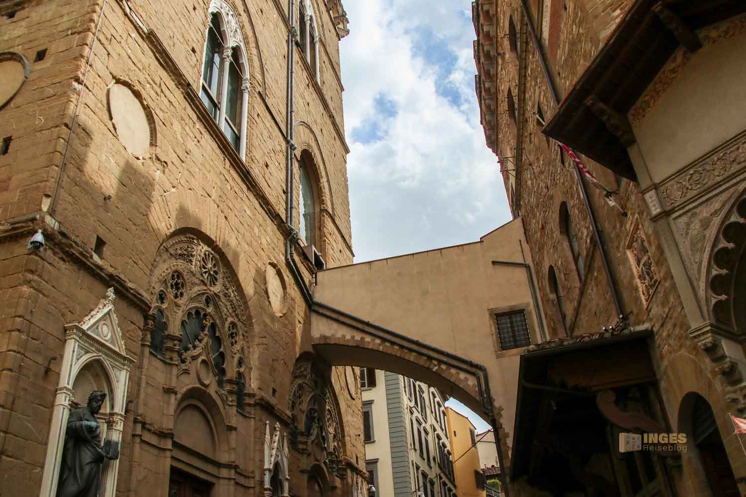 Beim Gang um Orsanmichele dachte ich bei dem Gebäude daneben im ersten Moment, das gehört auch zur Kirche. Ist es doch mit einem Brückengang miteinander verbunden. Die Rede ist vom