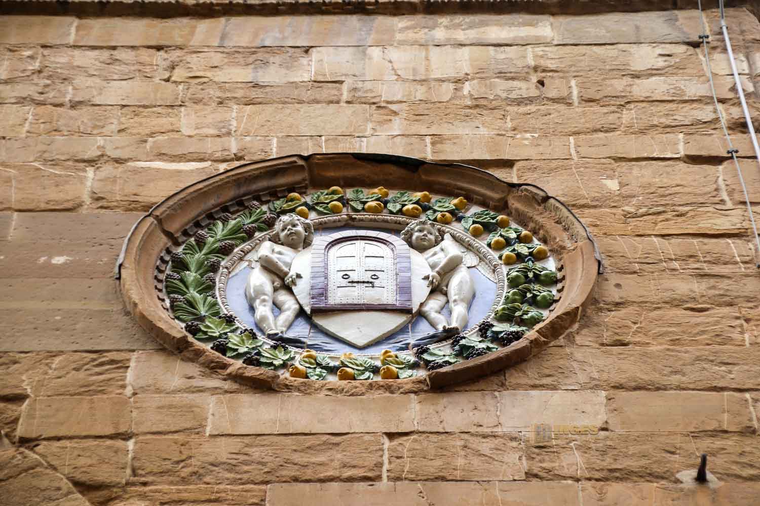 zu sehen. Eigentlich kann man sie aufgrund ihrer Größe und Farbenpracht nicht übersehen. In den wunderschönen Keramikbildern sieht man z.B. die Wappen der Ärzte und Apotheker (Madonna), der Fleischer oder der Goldschmiede.