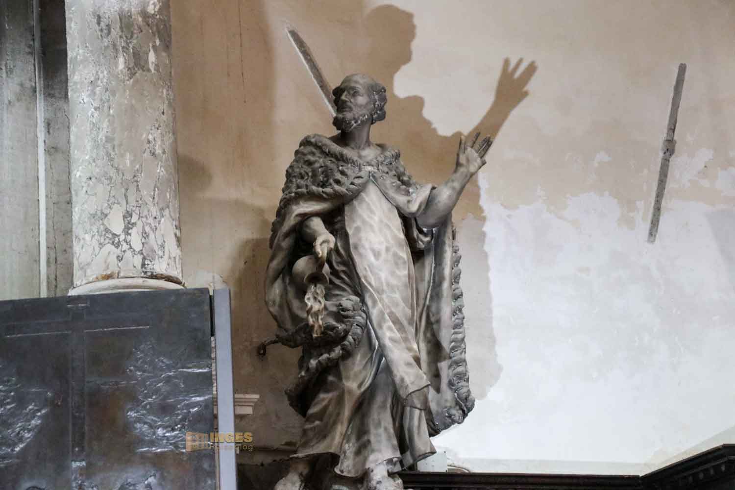 Die 24 Säulen tragen Füße und Kapitelle aus dem 14. Jahrhundert. Licht fällt in das Hauptschiff durch halbrunde Fenster. Den oberen Teil der Flächen ziert ein 24-teiliger Gemäldezyklus mit Heiligen des Karmeliter-Ordens. Im 17.-18. Jahrhundert wurden sie von verschiedenen Künstlern gemalt.