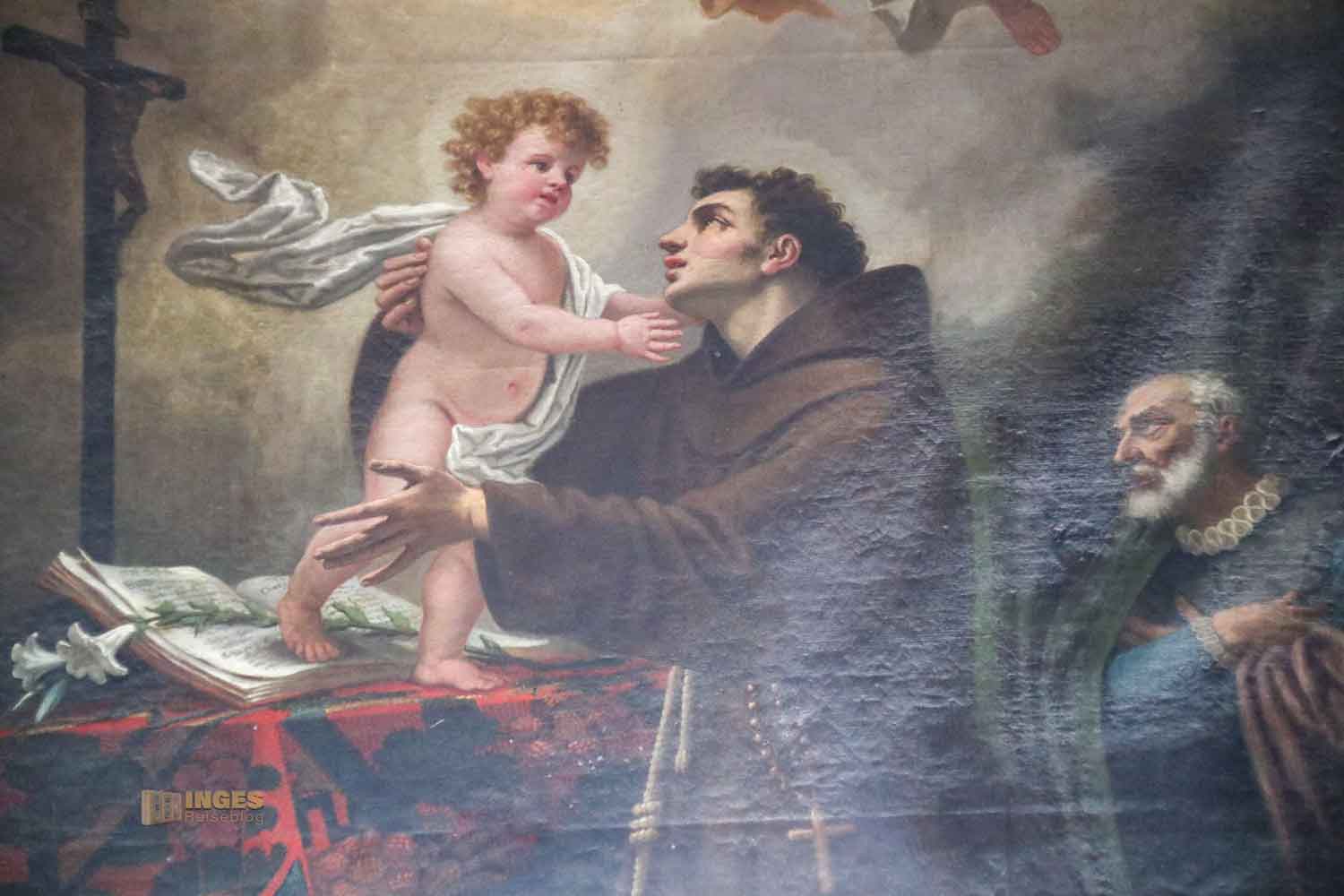 Vielleicht fasziniert mich der Hl. Antonius auch deshalb, weil eines von seinen zahlreichen Wundern dem von Franz v. Assisi gleichkommt. Während der zu Vögeln gepredigt hat (es gibt da einen wunderschönen Handlauf im Dom zu Naumburg), sprach Antonius zu den Fischen im Meer. Wir wollten während unserer vier Wochen in Venedig einen Abstecher nach Padua in die ihm geweihte Kirche machen. Da uns aber Venedig so gefesselt hat, wartet dieser Ausflug immer noch auf uns. Er steht aber auf der 'da müssen wir noch hin-Liste' ganz weit oben.