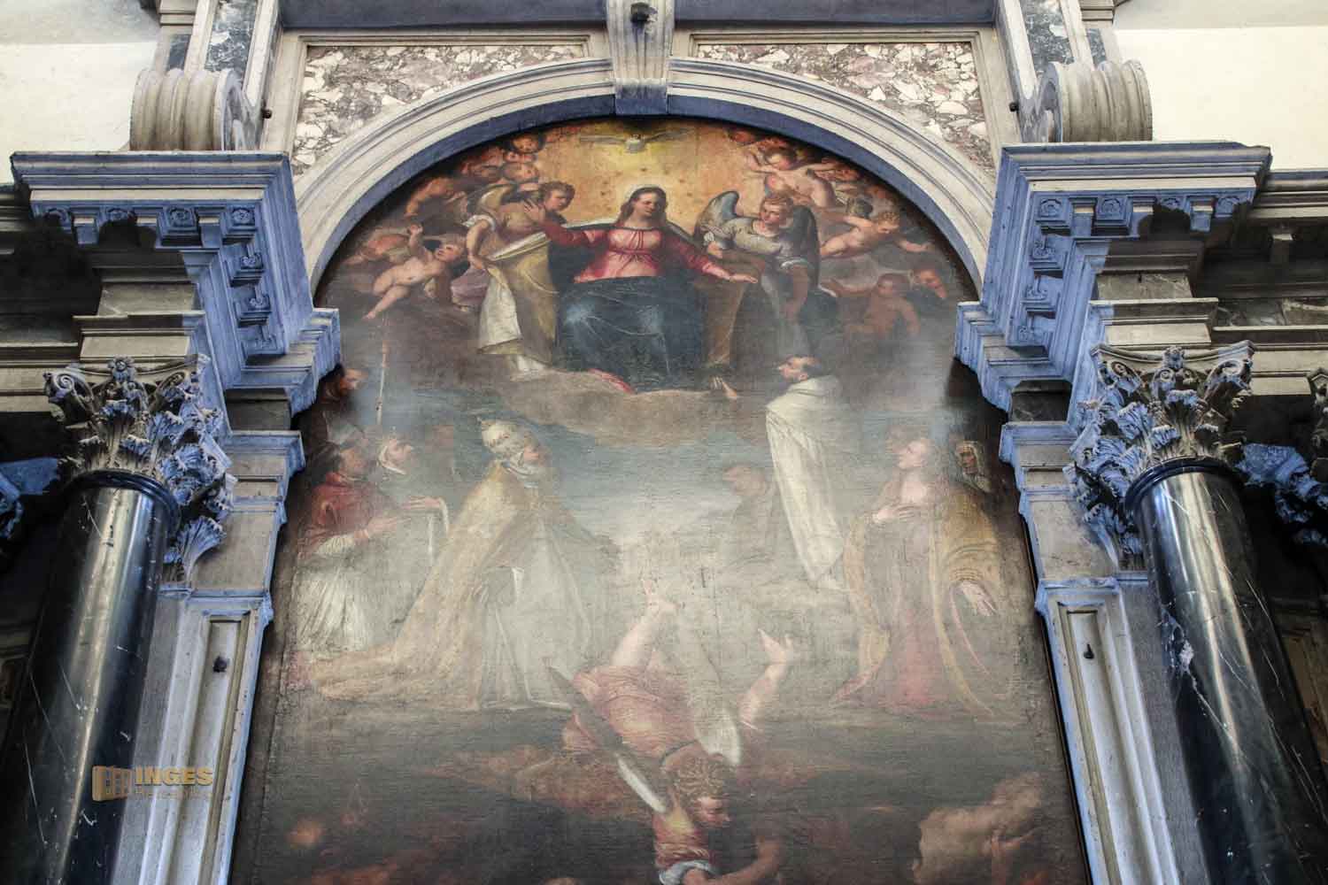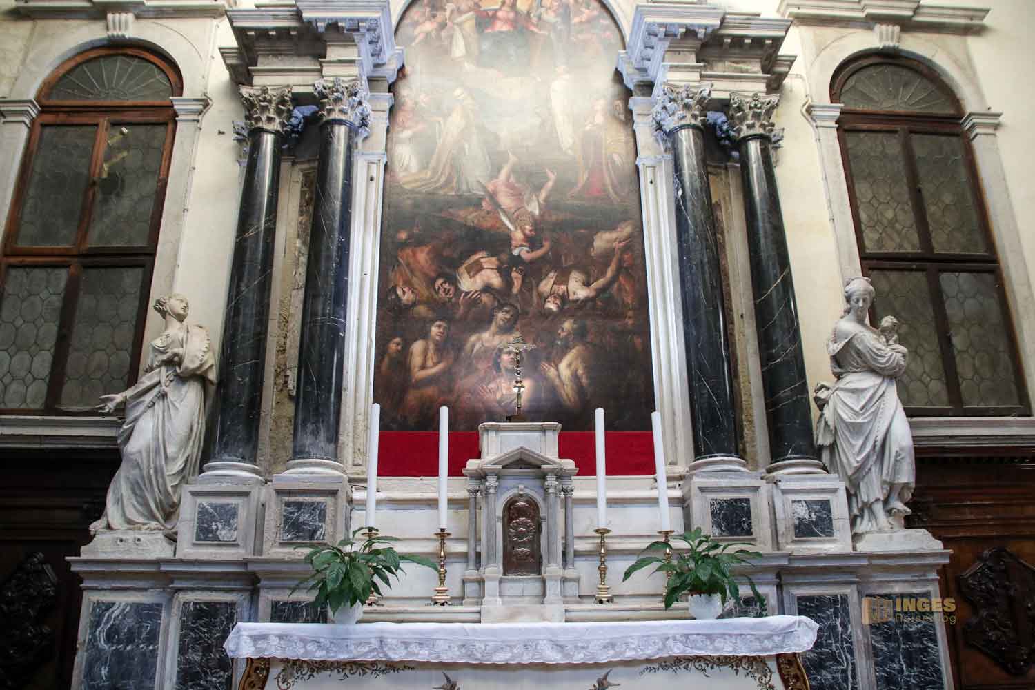 Mit Heiligen und Seelen ist die Namenspatronin der Kirche im Altarbild zu sehen. Zwischen 1592 und 1595 soll es von Pace Pace gemalt worden sein.