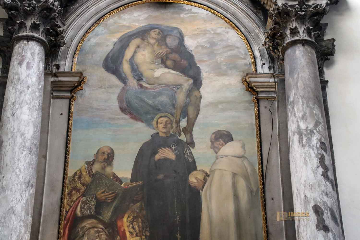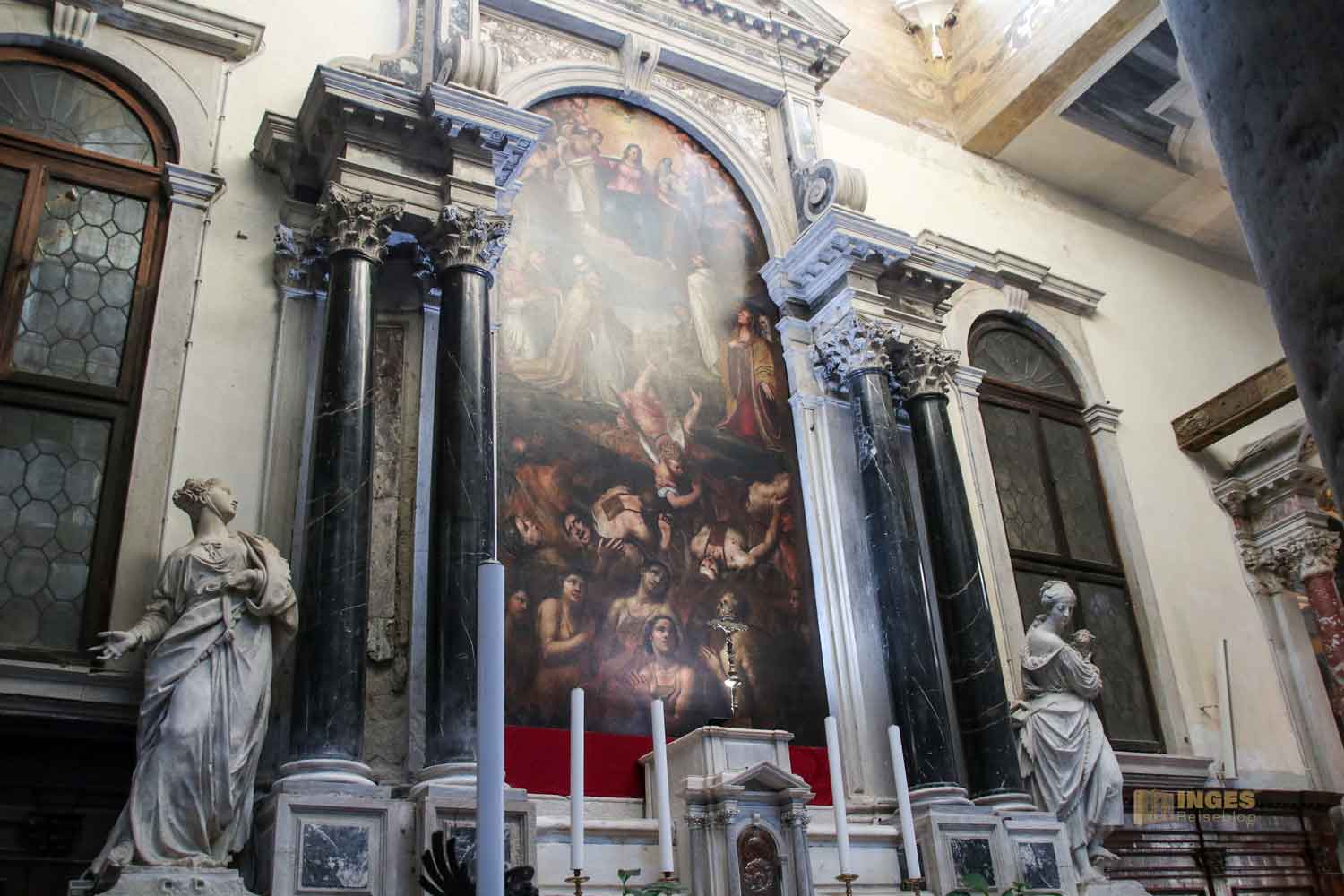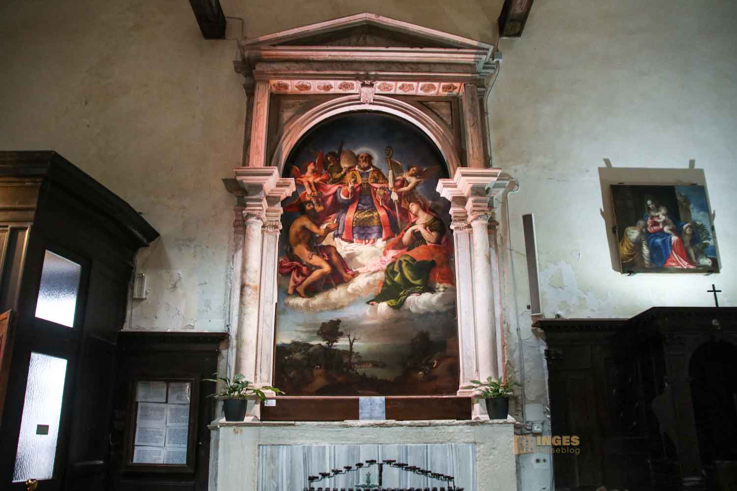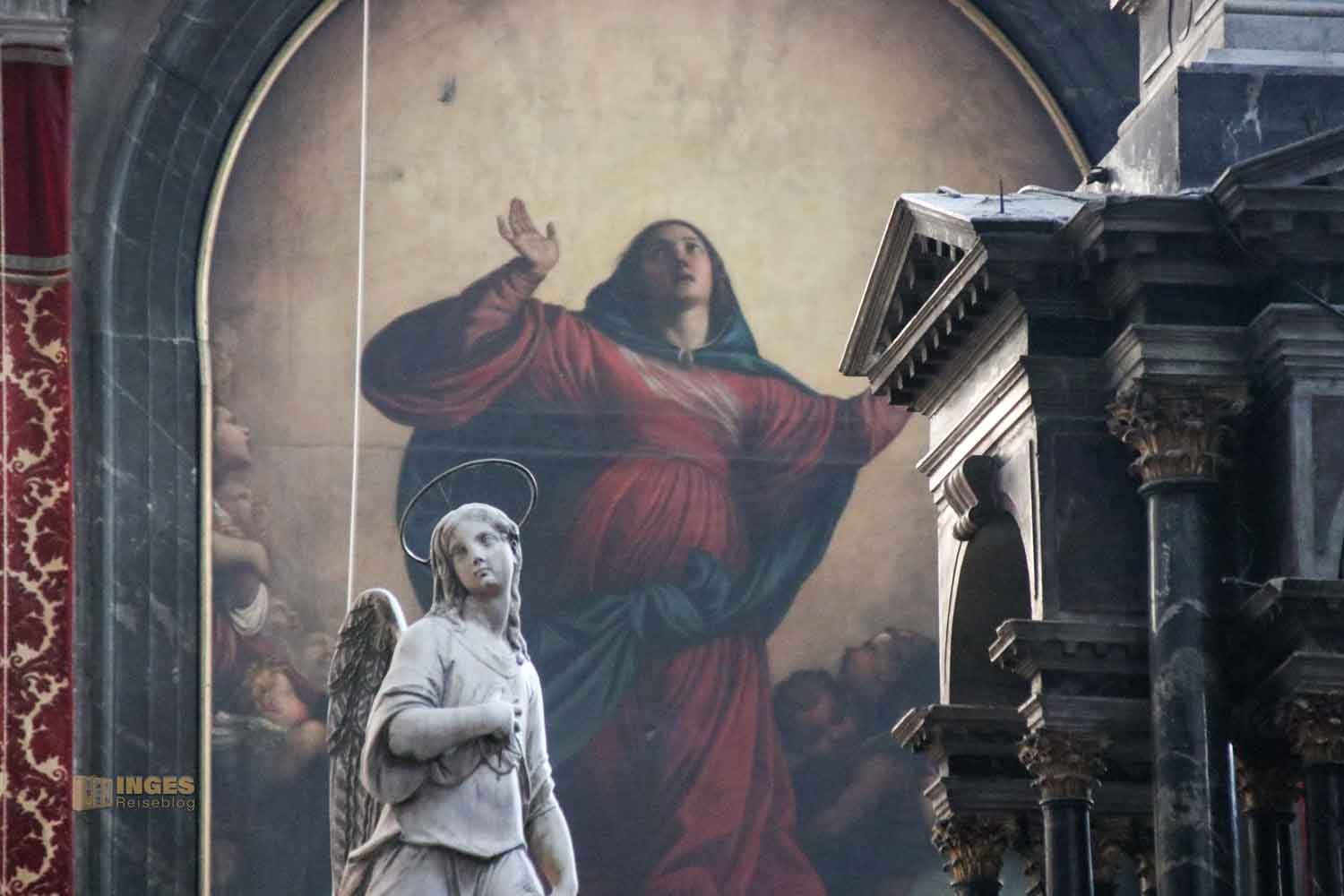 Kritisiert hat Jahre später Dolce, Humanist, Dichter und Schriftsteller, den - in seinen Augen eigensinnigen - Gebrauch von Farbe und Schatten in diesem Gemälde. Tja, selber besser machen, würde ich da salopp kontern. Geschmäcker sind ja bekanntermaßen auch ziemlich verschieden. Euch wird sicher in meinen Fotos auch nicht alles gefallen, was ich gut finde. Macht euer eigenes Urteil bei dem Altarbild ....