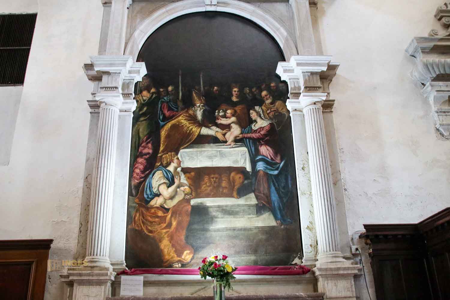 - 2.8 Altarbild "Verstellung Jesu im Tempel" in der Kirche Santa Maria dei Carmini in Venedig