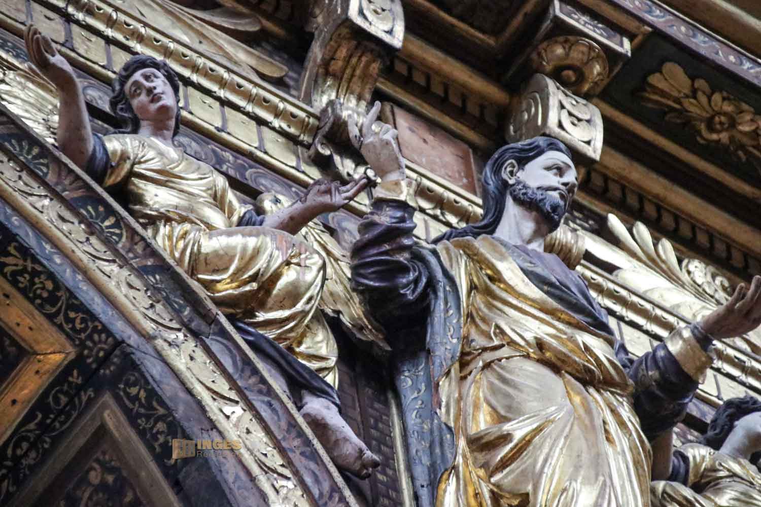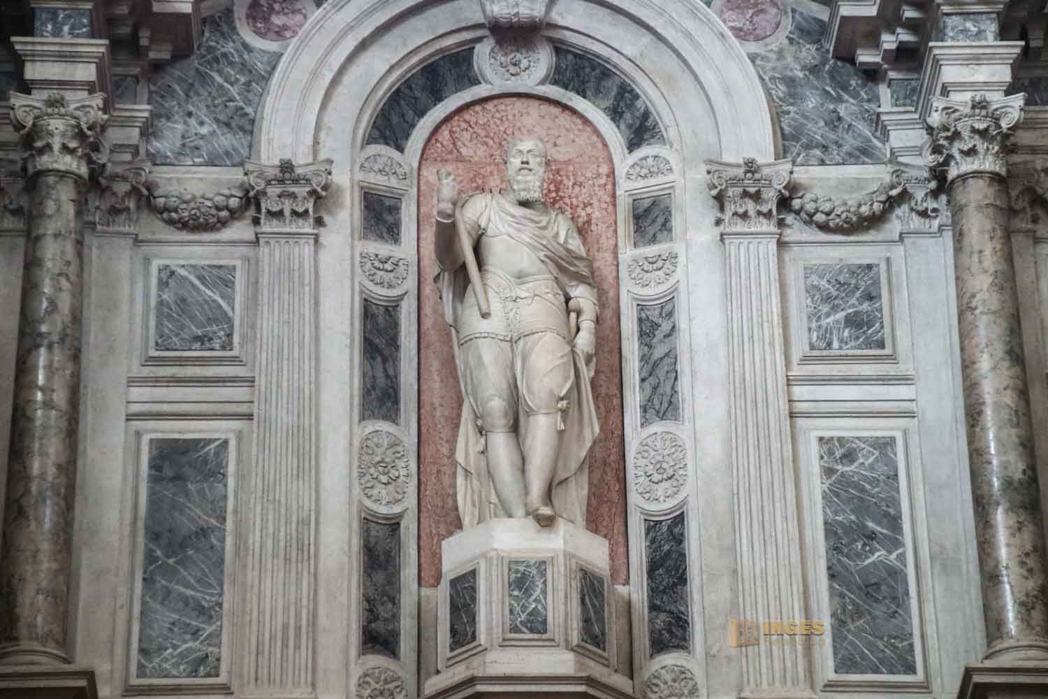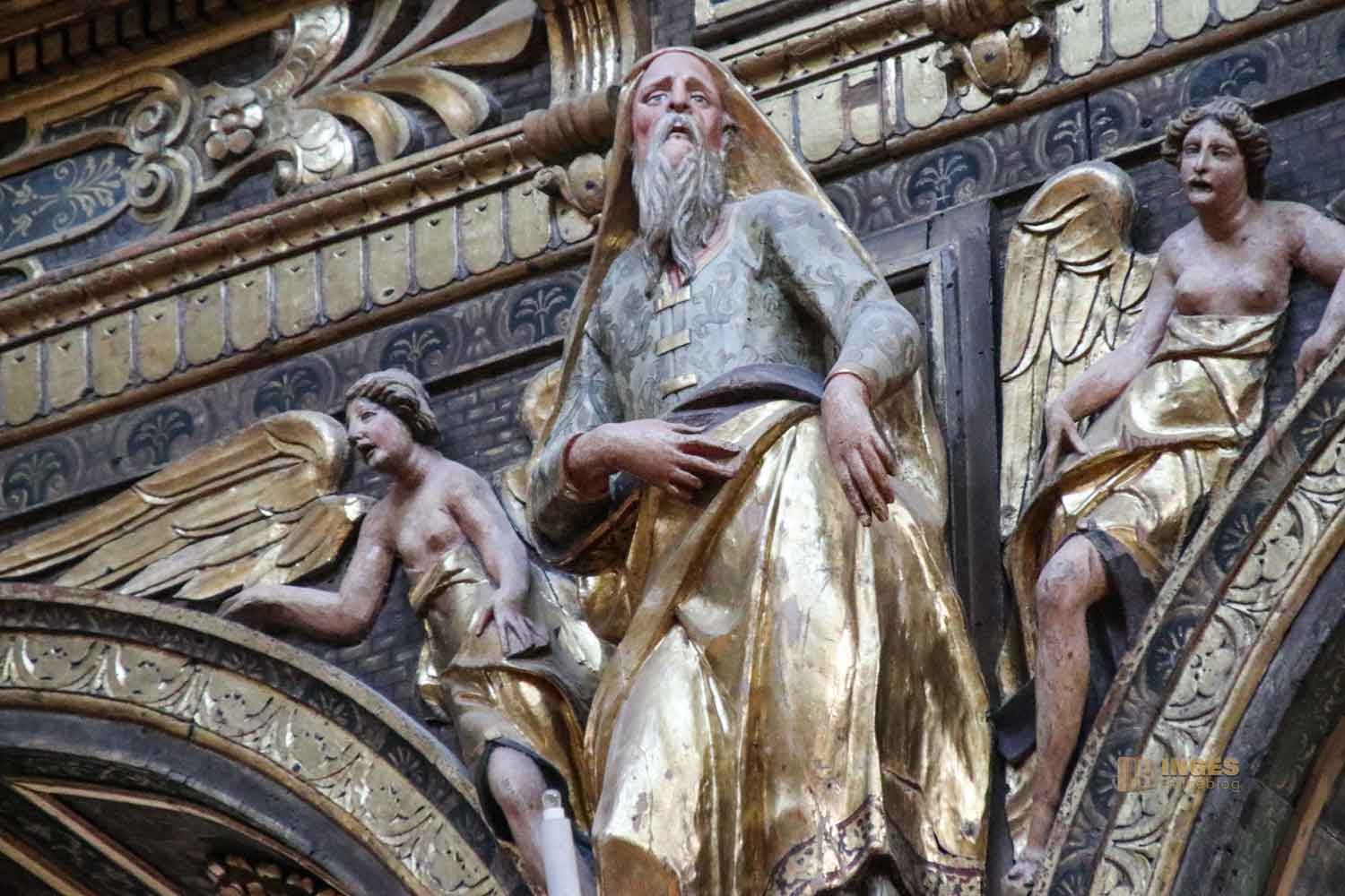 Darunter sind über jeder Säule Statuen von Propheten und Heiligen. Meine 'Emma' freut sich genauso wie ich über solche Fotomotive. Ist unten die Sicht auf die Sehenswürdigkeiten nicht frei, dann arbeiten wir halt in der Höhe 😊 Dabei habe ich mich schon teilweise am Gesichtsausdruck der Engel neben der Statuen amüsiert. Schaut selber, von gelangweilt über desinteressiert ist alles dabei. Was sich hier die Erschaffer wohl dabei gedacht haben?