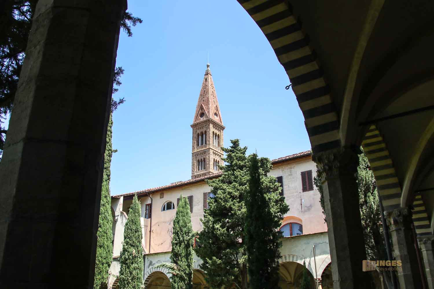Die gehen zurück zu jener Zeit, als dieses Gebiet noch vor den Stadtmauern von Florenz lag und ein Feld und Weinberge waren. Diesen Platz hat sich im 10. Jahrhundert der Dominikanerorden für seine neue Bleibe ausgesucht. Nach einer Kapelle, die im Lauf der Zeit größer wurde, und im 14. Jahrhundert und nach einem weiteren Umbau 1858 zu der Kirche wurde, wie man sie heute sieht, gab es natürlich auch ein Kloster.