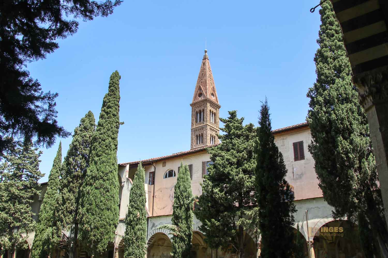 Wir haben unseren ausgiebigen Rundgang von Kloster und Basilika Santa Maria Novella mit einem letzten Blick vom Kreuzgang auf Kirche und Kirchturm beendet. Ja, ich konnte mich nicht auf ein Foto festlegen, denn die typischen toskanischen Zypressen haben gleich richtig schön den ersten Tag und den Einstieg in Florenz und die Toskana vermittelt.