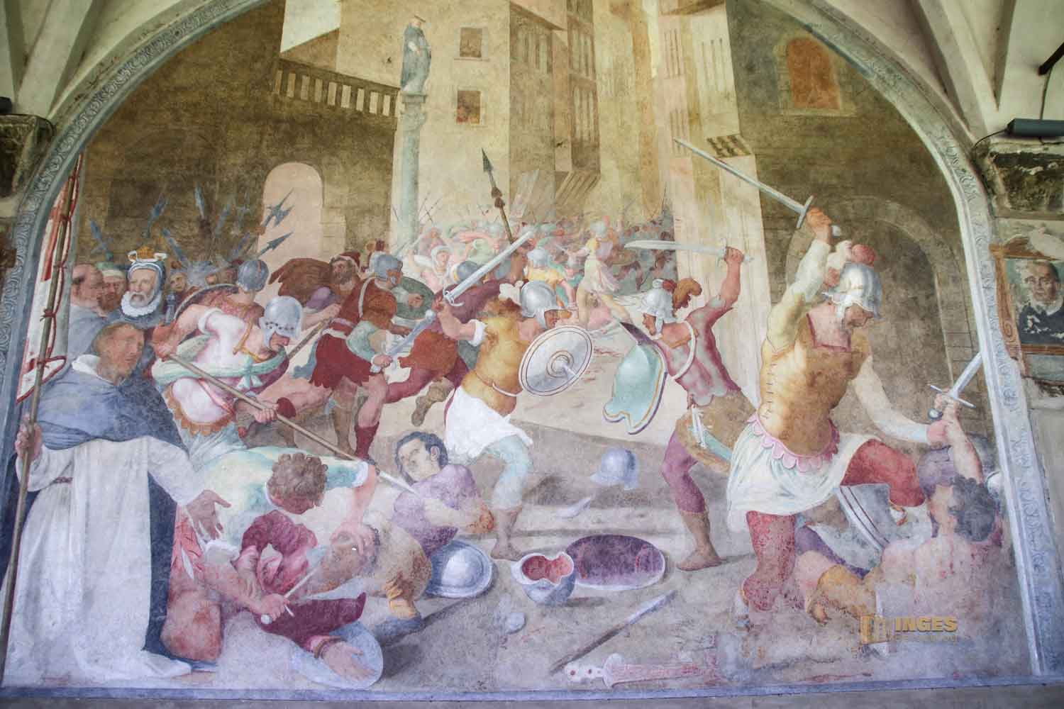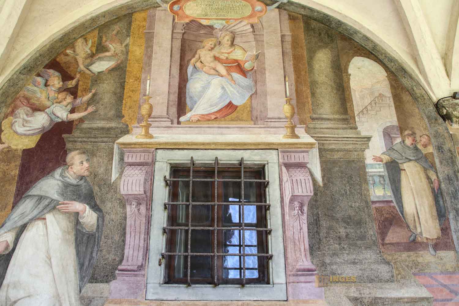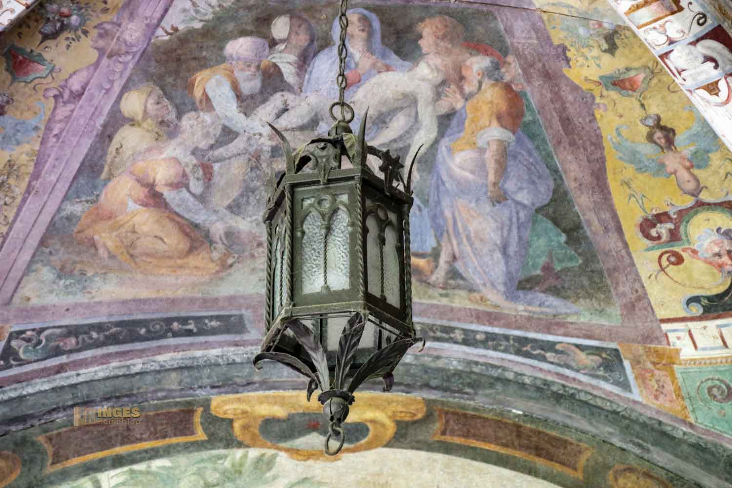 der mit Fresken aus dem 16./17. Jahrhundert verziert ist, kann man nicht besichtigen. Er gehört zur Unteroffiziersschule der Carabiniere, die direkt gegenüber dem Bahnhof ihren Sitz haben.