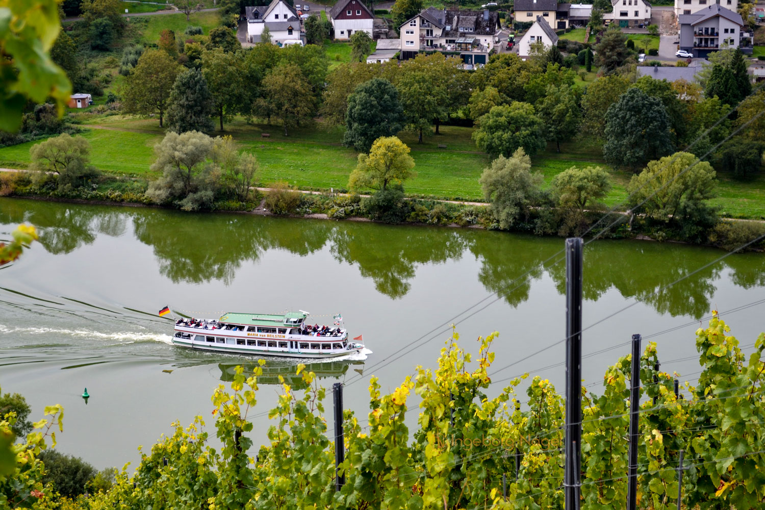 Auch hier, wie auch in Briedel, bringt eine Fähre die Wanderer und Weinbauern von Pünderich hinüber in die Weinberge.