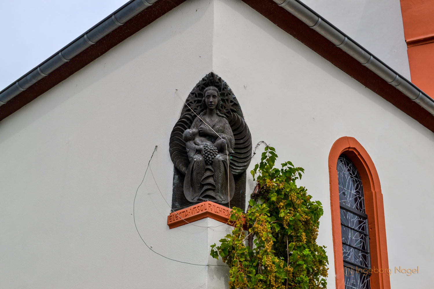 Briedel, ein kleiner Weinort langgezogen an der Mosel mit kleinen verwinkelten Gässchen und alten Fachwerkhäusern und einer sehenswerten Kirche auf einer Anhöhe mit Blick über den Ort.