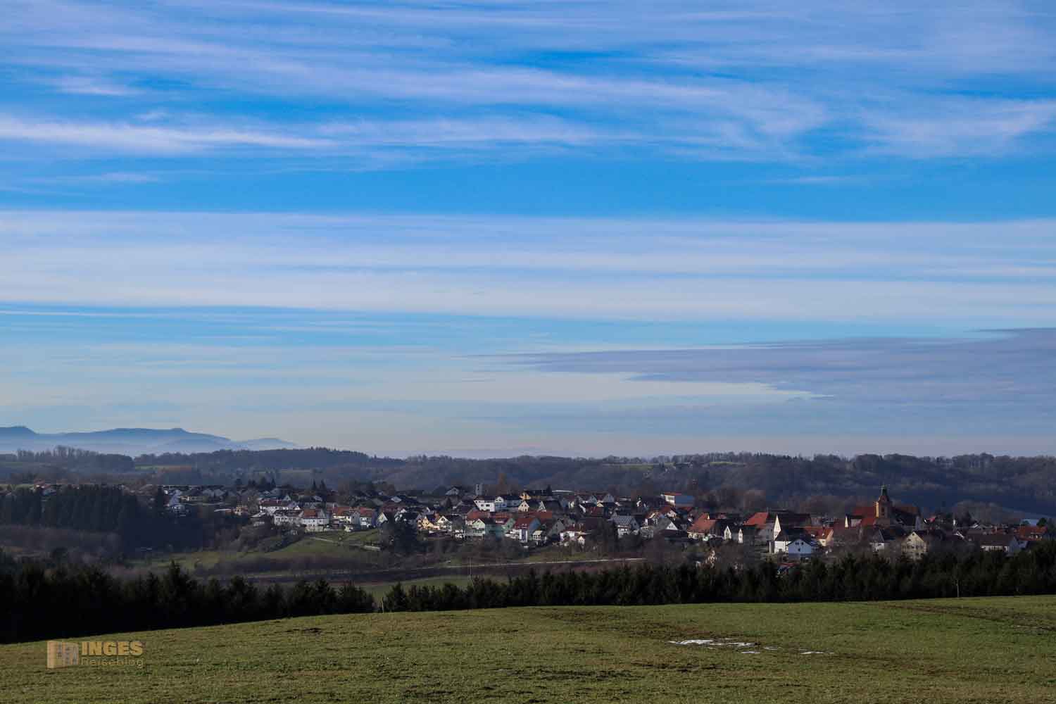 Und nach Süden hin kann man von der Kapelle auch einen herrlichen Blick auf die Albkette erhaschen.