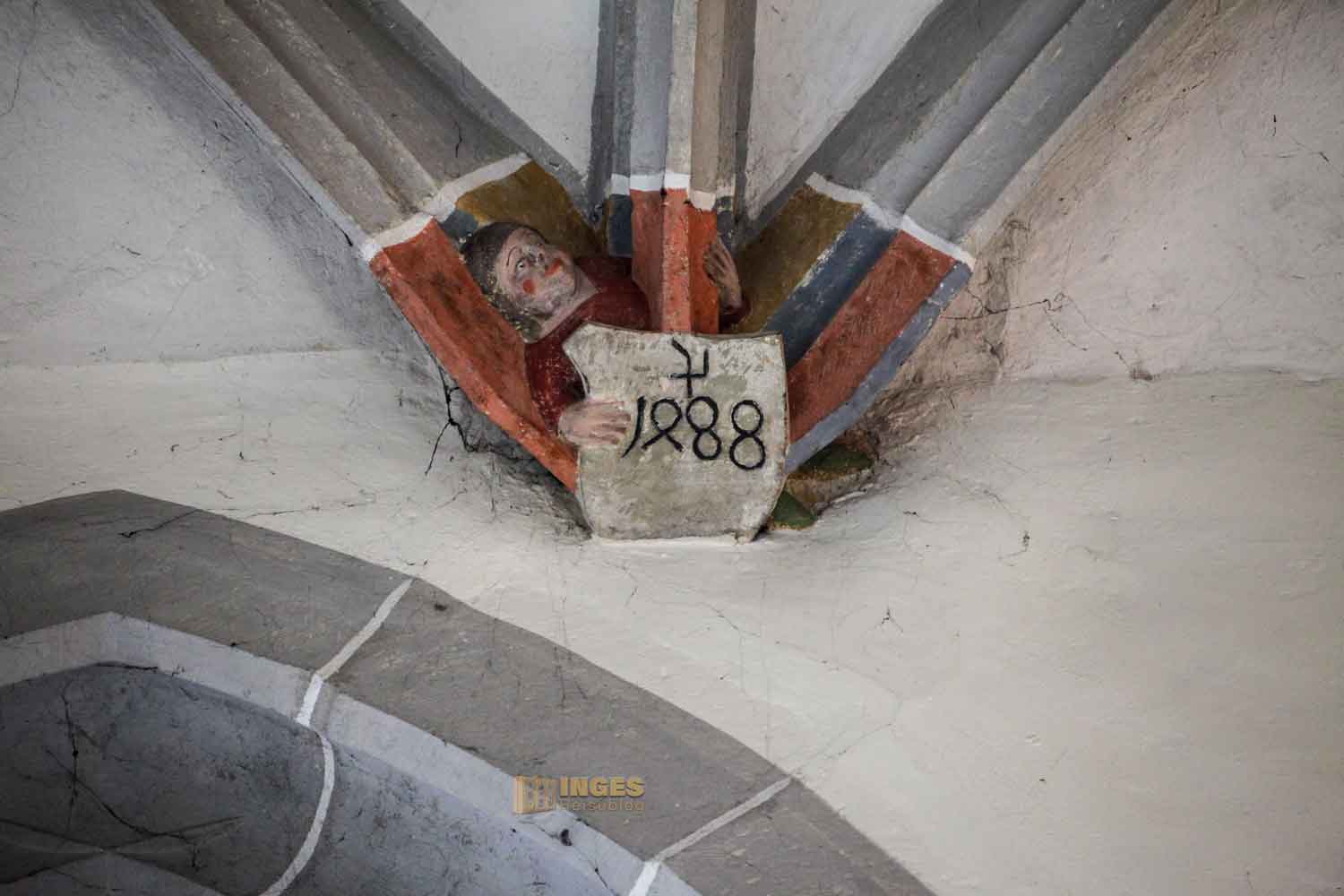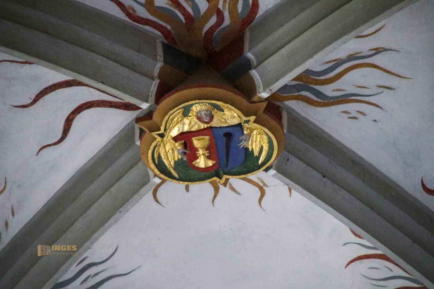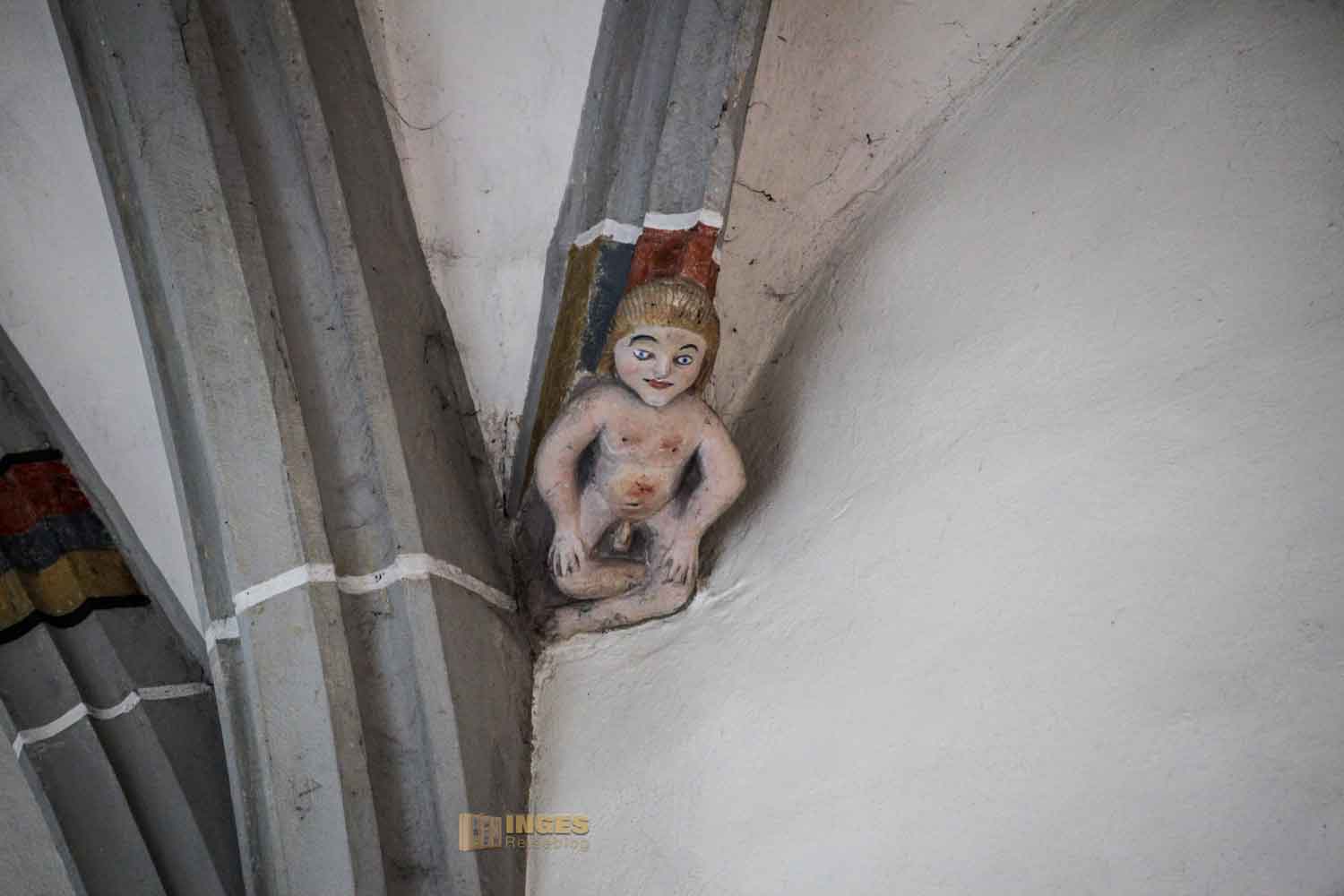 Und noch etwas zog mich in der Kirche in den Bann, was ich bisher in Kirchen so gehäuft auch nicht gesehen habe. Mehrfach sind in der Kirche kleine Buben verteilt, die Jahreszahlenschilder mit dem Meisterzeichen des Steinmetzes in den Händen halten. Insgesamt verdienen diese Figuren auch einen zweiten Blick ....