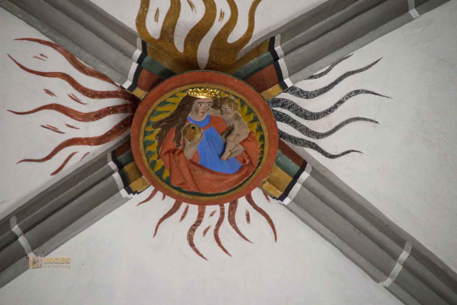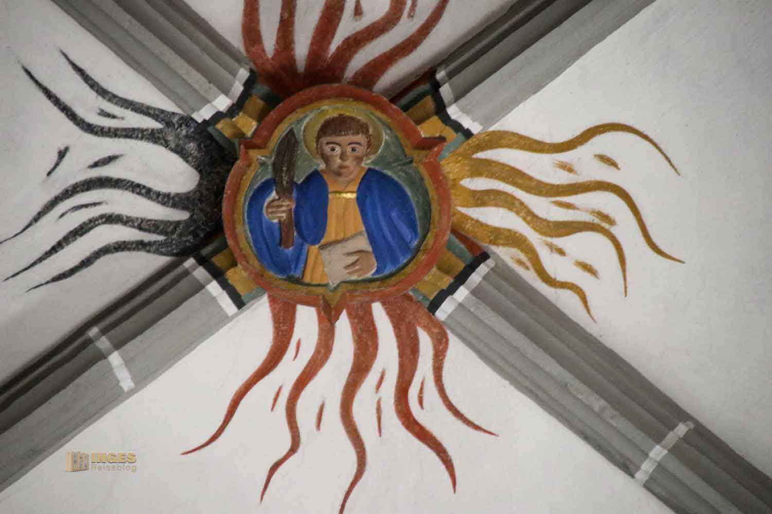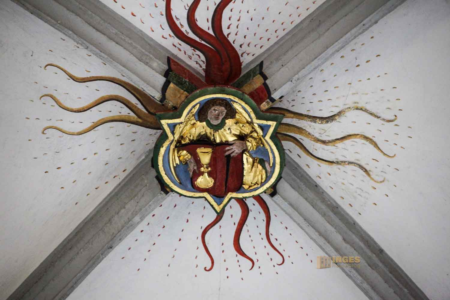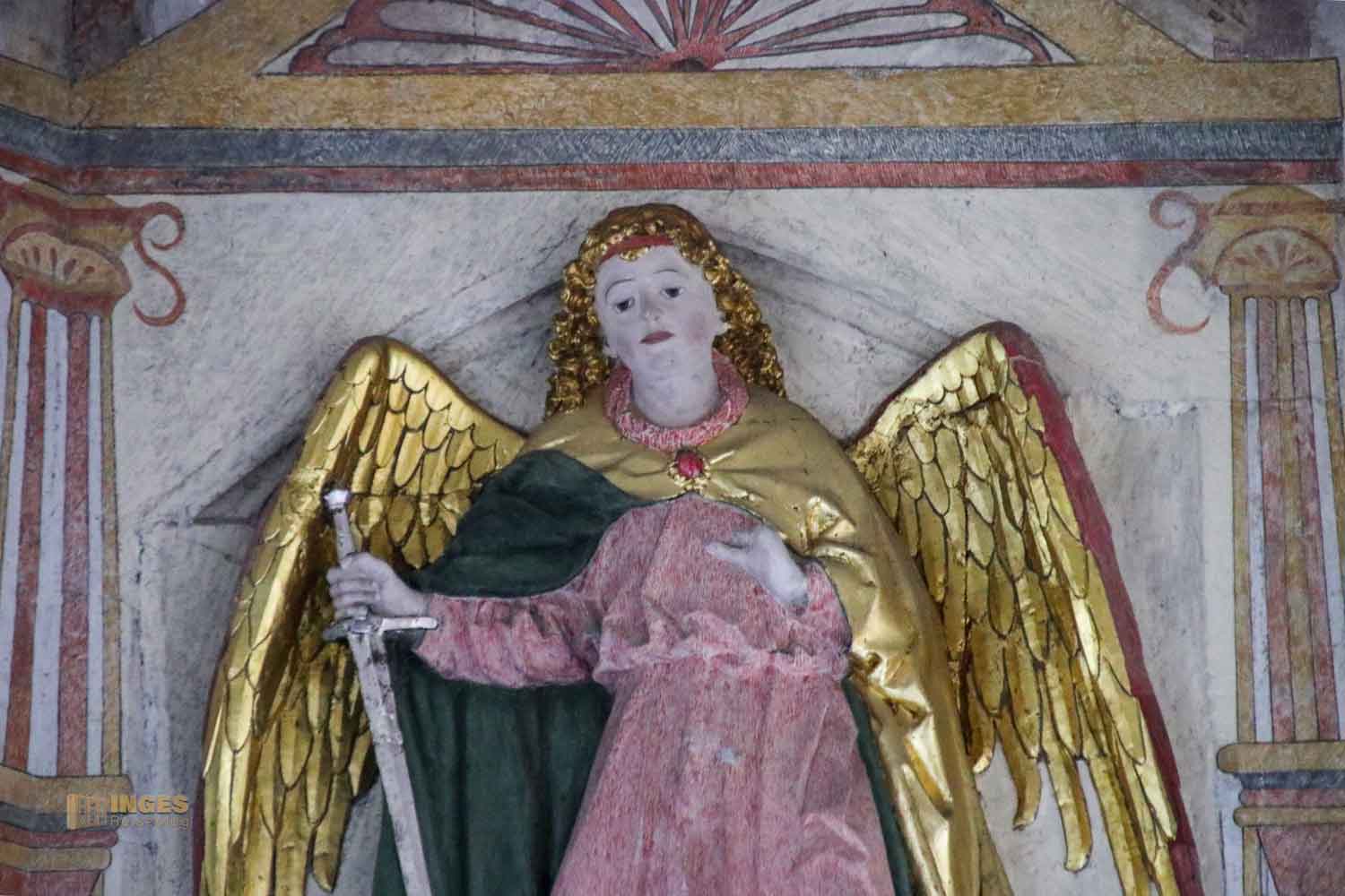 Auch hier in der Kirche wird der Erzengel Michael, wie fast überall, mit einem Schwert dargestellt. Er bekämpft mit Gottes Hilfe den Drachen, der das Böse symbolisiert und verhilft der Gerechtigkeit zum Sieg. Es gibt viel über ihn nachzulesen, wenn es euch interessiert, dann klickt HIER.
