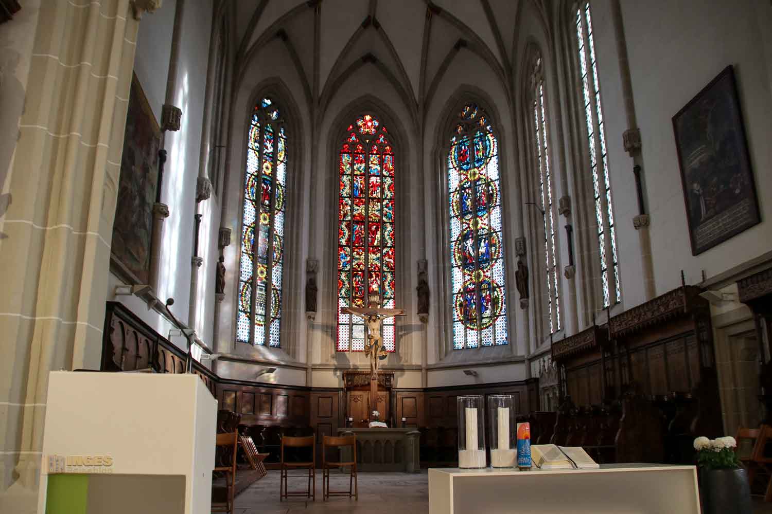 die Chorfenster und das Chorgestühl in der Oberhofenkirche
