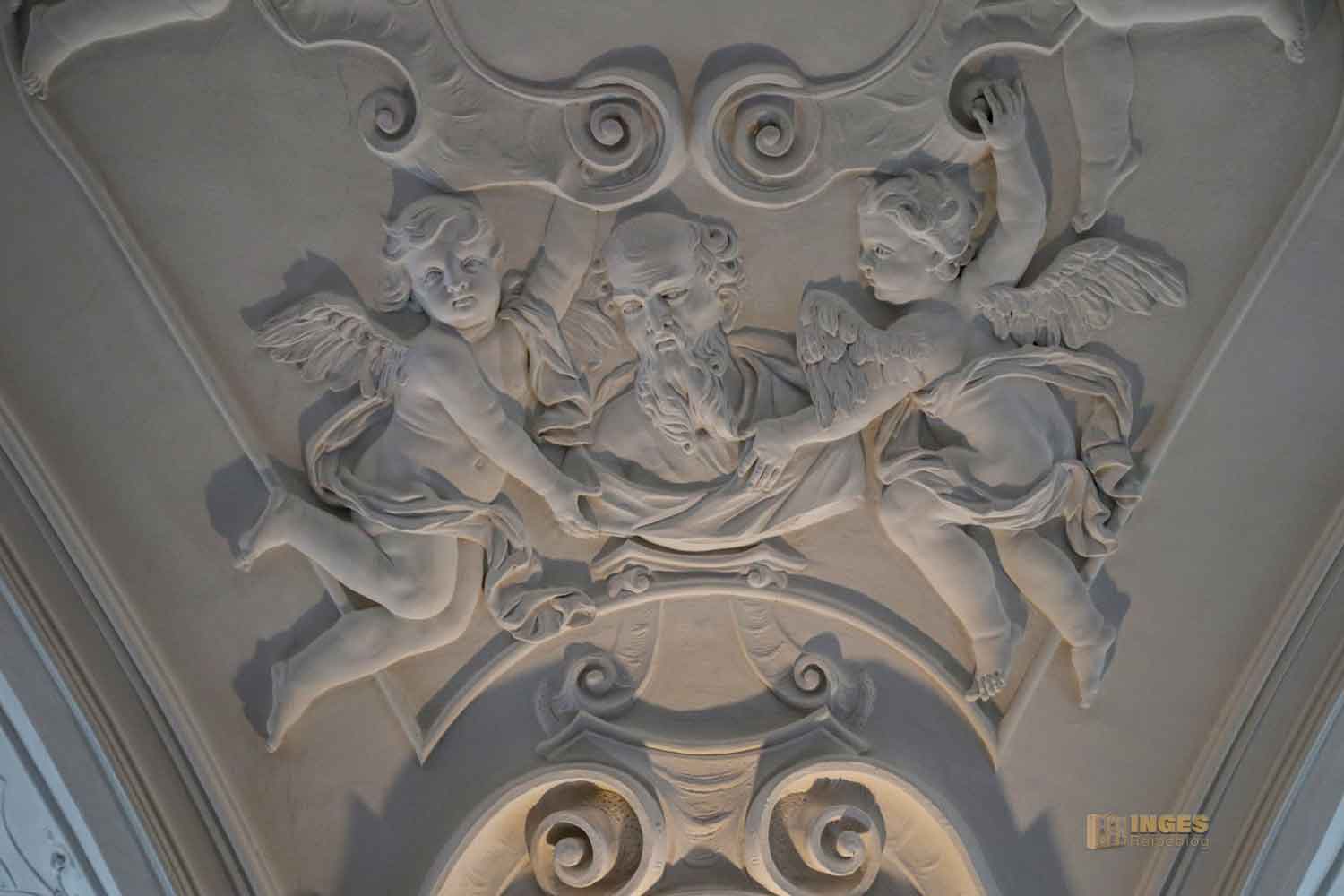 Auch hier in der Schlosskapelle begegnet einem, wie in den meisten Ellwanger Kirchen ein wahrer Stuckhimmel. Diese in der Kapelle sehen aus wie gerade frisch gemacht, dabei haben sie schon einige Jährchen hinter sich. Aber nein, alle Einzelheiten werde ich euch sicherlich nicht verraten. Denn ich finde, selbst hier mit meinen vielen Fotos und dem Beitrag - man muss die Schlosskapelle wirklich selber, live und in Farbe (wie man so schön sagt) erleben. Ich möchte euch hier nur den Anreiz dazu geben. Und NEIN, ich werde von niemandem gesponsert, noch bin ich dazu aufgefordert worden, diesen Beitrag zu schreiben. Es ist alleinig meine Begeisterung, dass solche Kleinode in die Welt müssen. Genauso wie die kleine Ulrichskapelle im Kloster Adelberg, die ihre eigene Geschichte in Wandmalereien in der Kirche erzählt. Ich bin fasziniert von solchen Objekten und immer auf der Suche nach neuen Kleinoden. Habt ihr eines? Dann schickt mir den Tipp gerne per Mail.