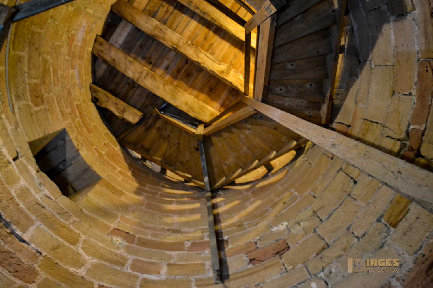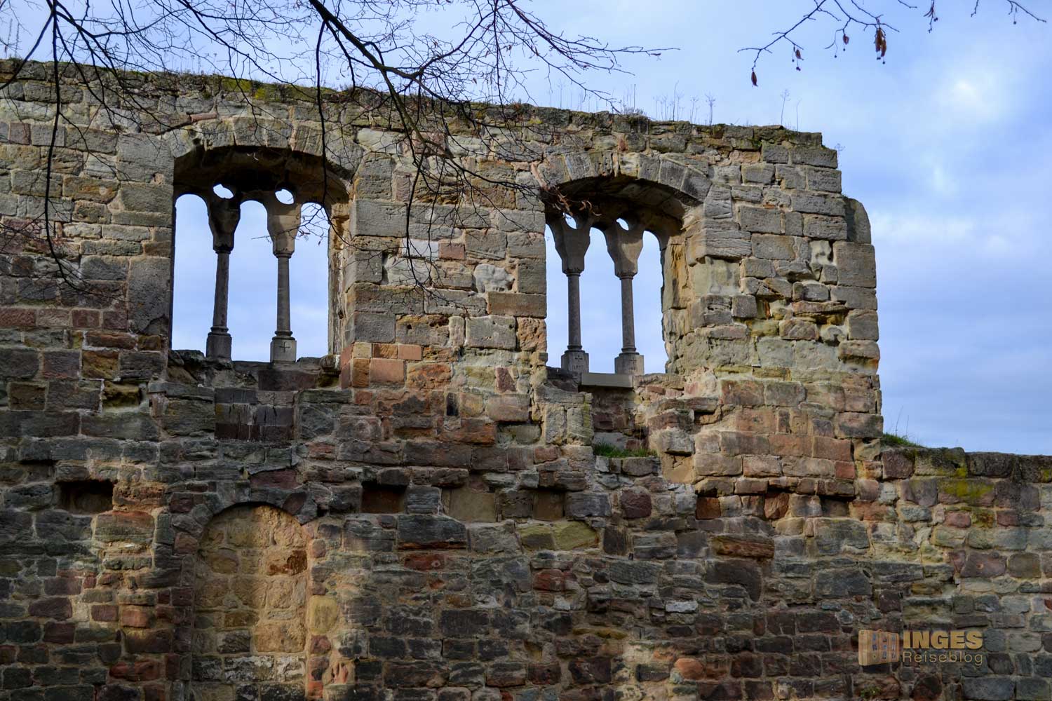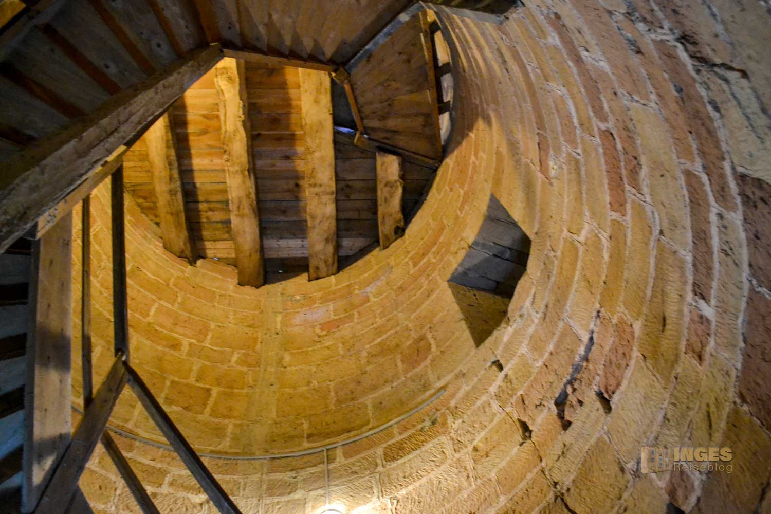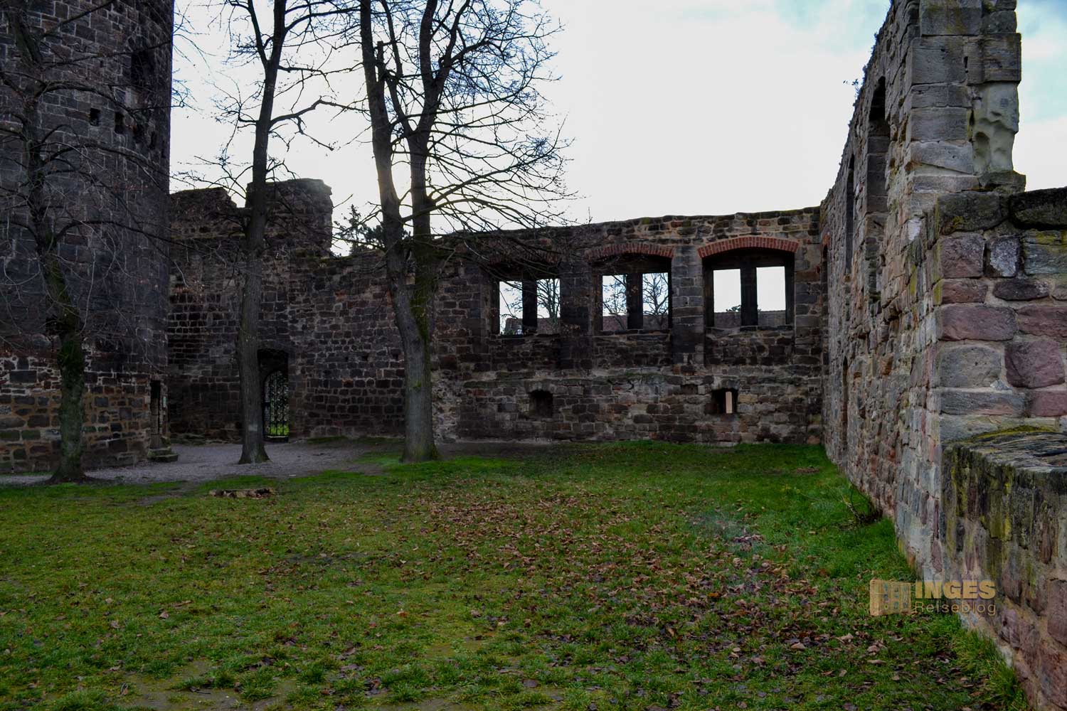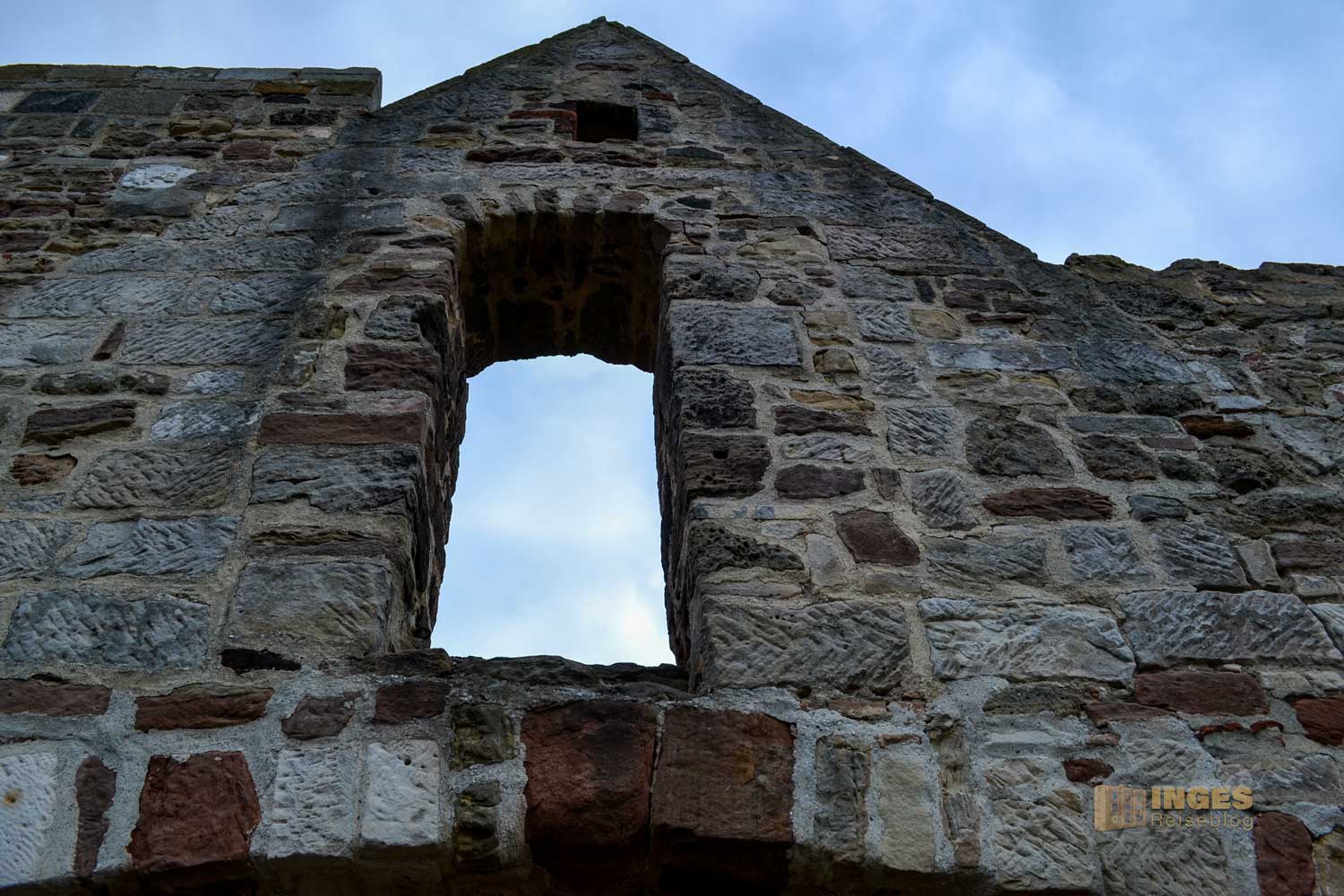 Aus der Zeit um 1230 stammt der wuchtige Bergfried. 32 Meter ragt er in die Höhe und hat eine Mauerstärke von 3,60 Meter. Den ursprünglichen Hocheingang in 8 Meter Höhe gibt es heute nicht mehr. Wäre vielleicht bei der Begehung des Turms ein bisschen umständlich. Man kann den Bergfried nämlich begehen, hinauf ins Turmgemach und der Wachstube. Ich habe mich aber lieber an der Außenansicht erfreut und auf eine Begehung nach dem ersten Eindruck verzichtet. Nicht, dass es mir nicht sicher erschien, aber ihr kennt ja mein Problem mit 'nicht schwindelfrei'. Spontan fiel mir dann aber bei der Außenansicht das Märchen der Gebrüder Grimm ein "Rapunzel, Rapunzel, lass dein Haar herunter".