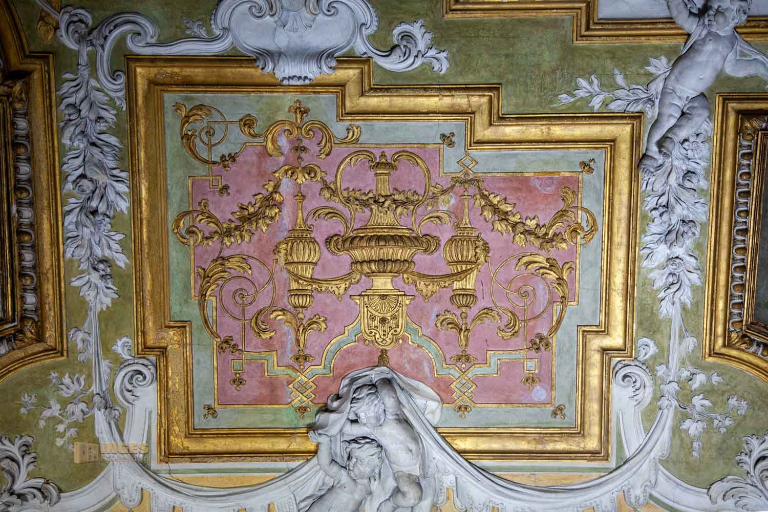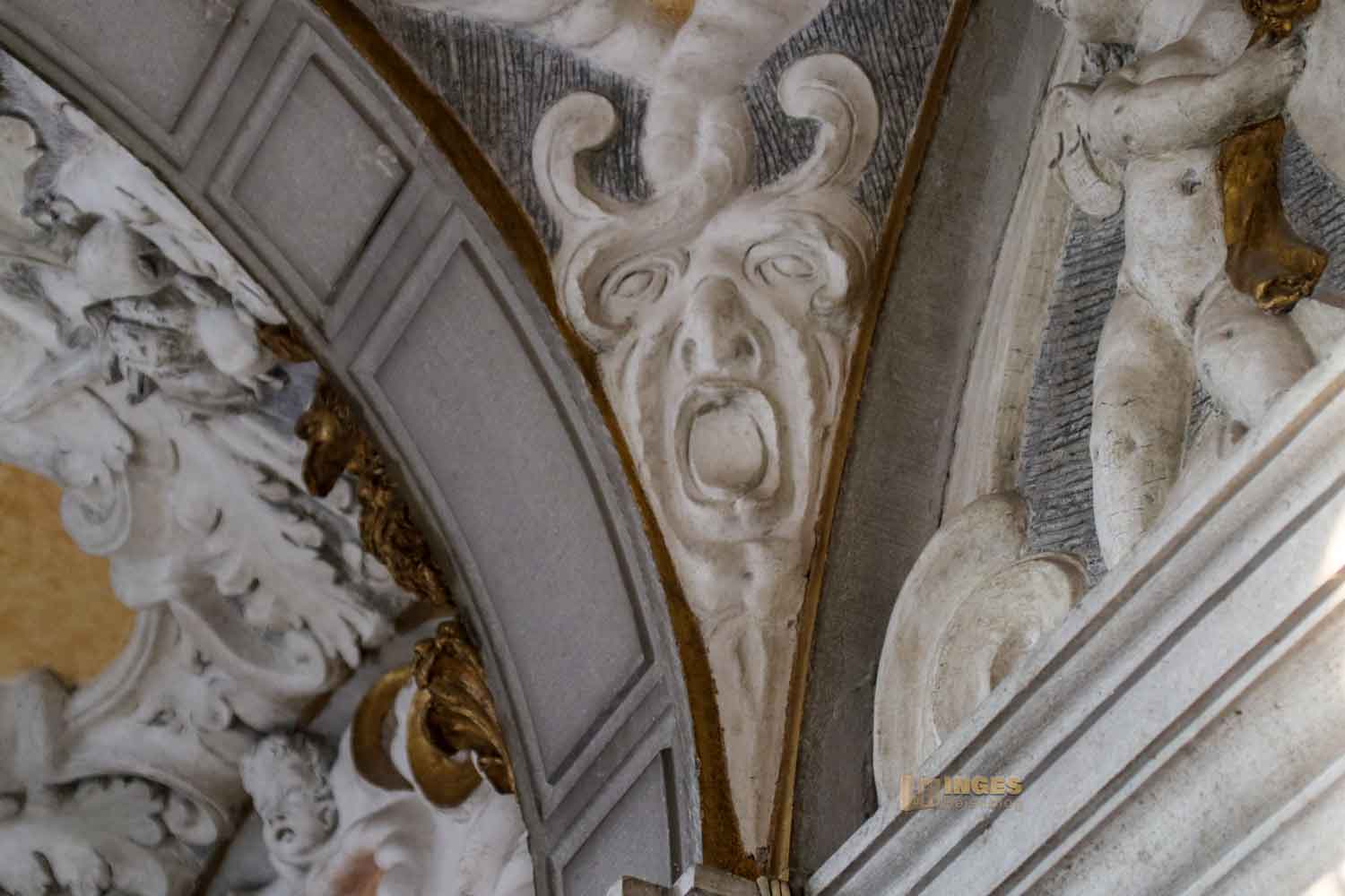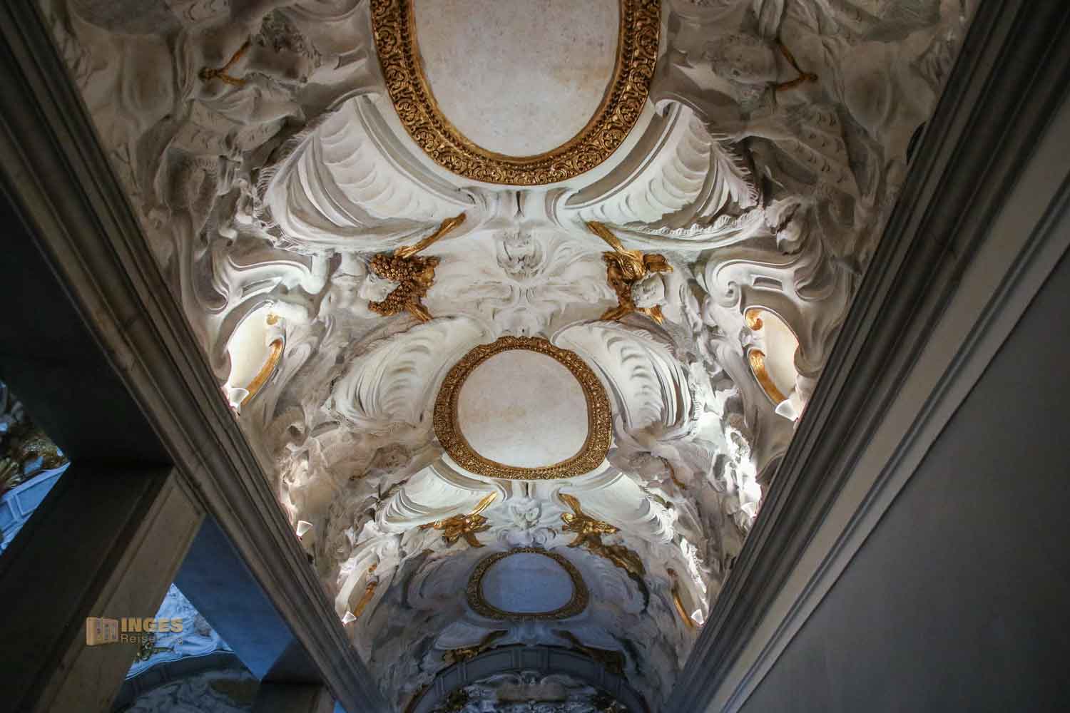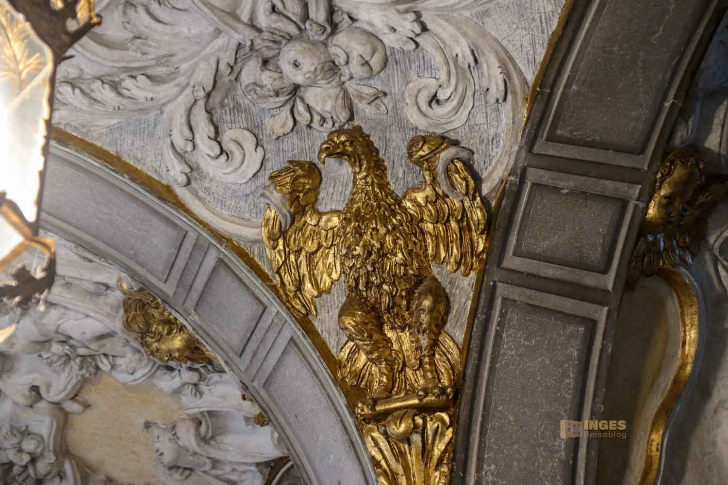 Abbondio Stazio hat sich hier im Flur 'ausgetobt' - vergoldete Adler, Engel und Fabelwesen aus der Mythologie in Stuck gesetzt.