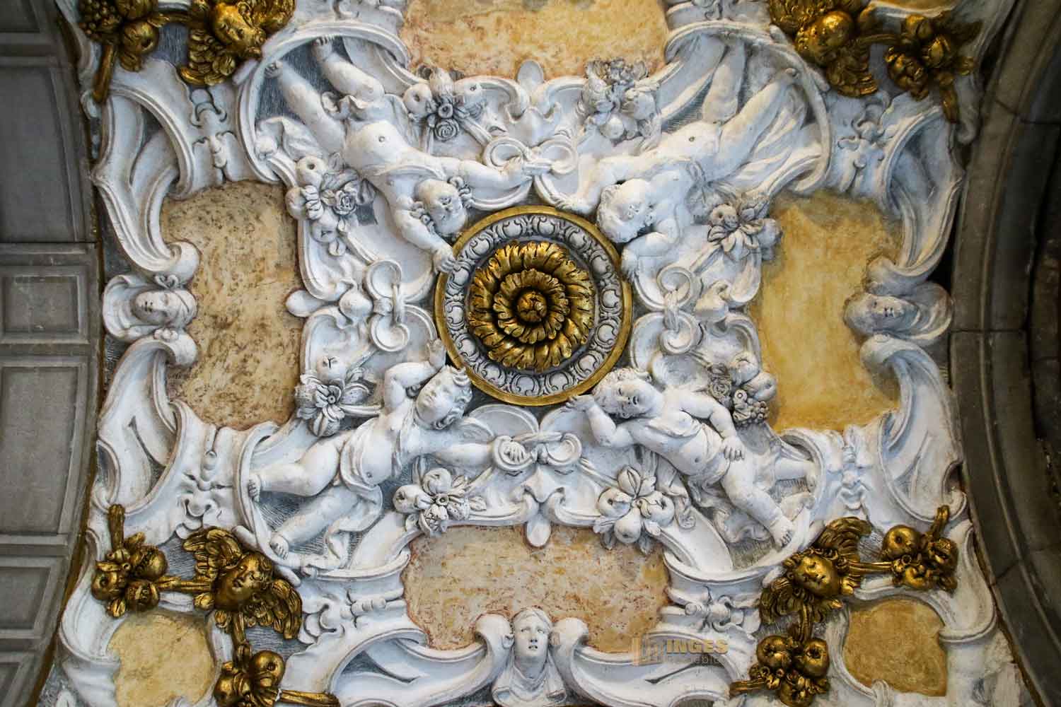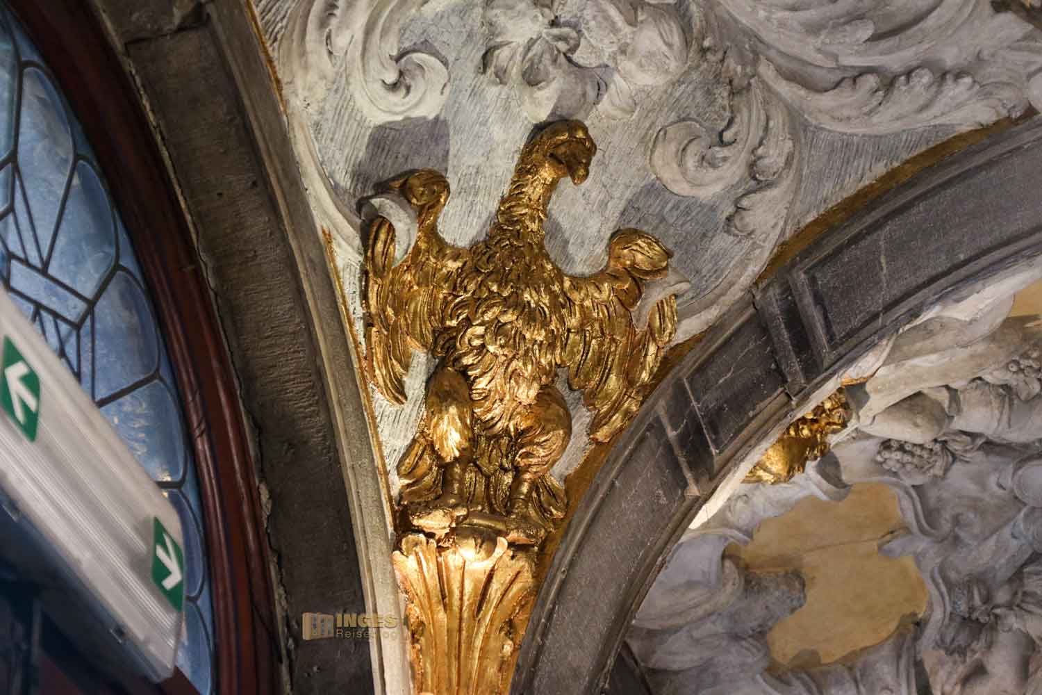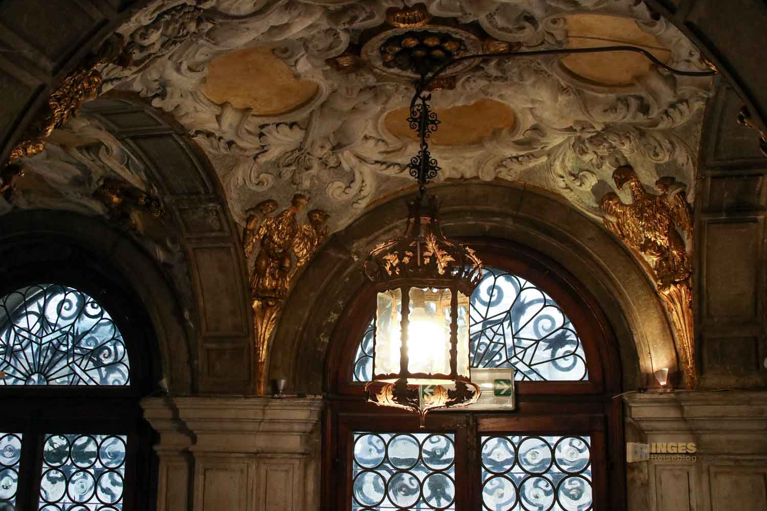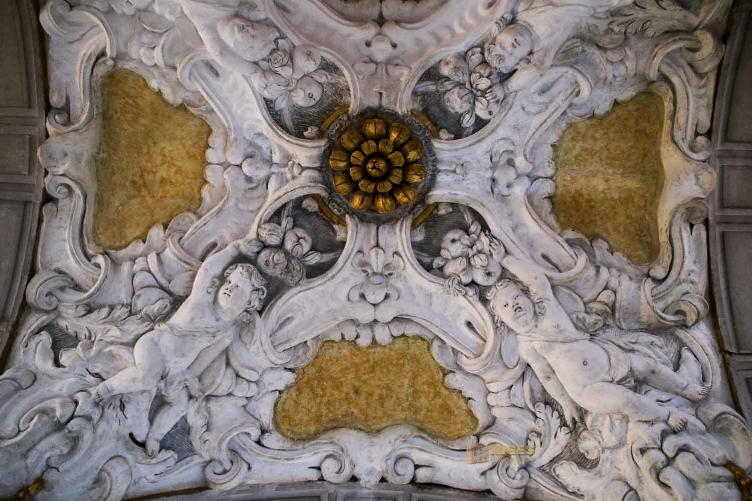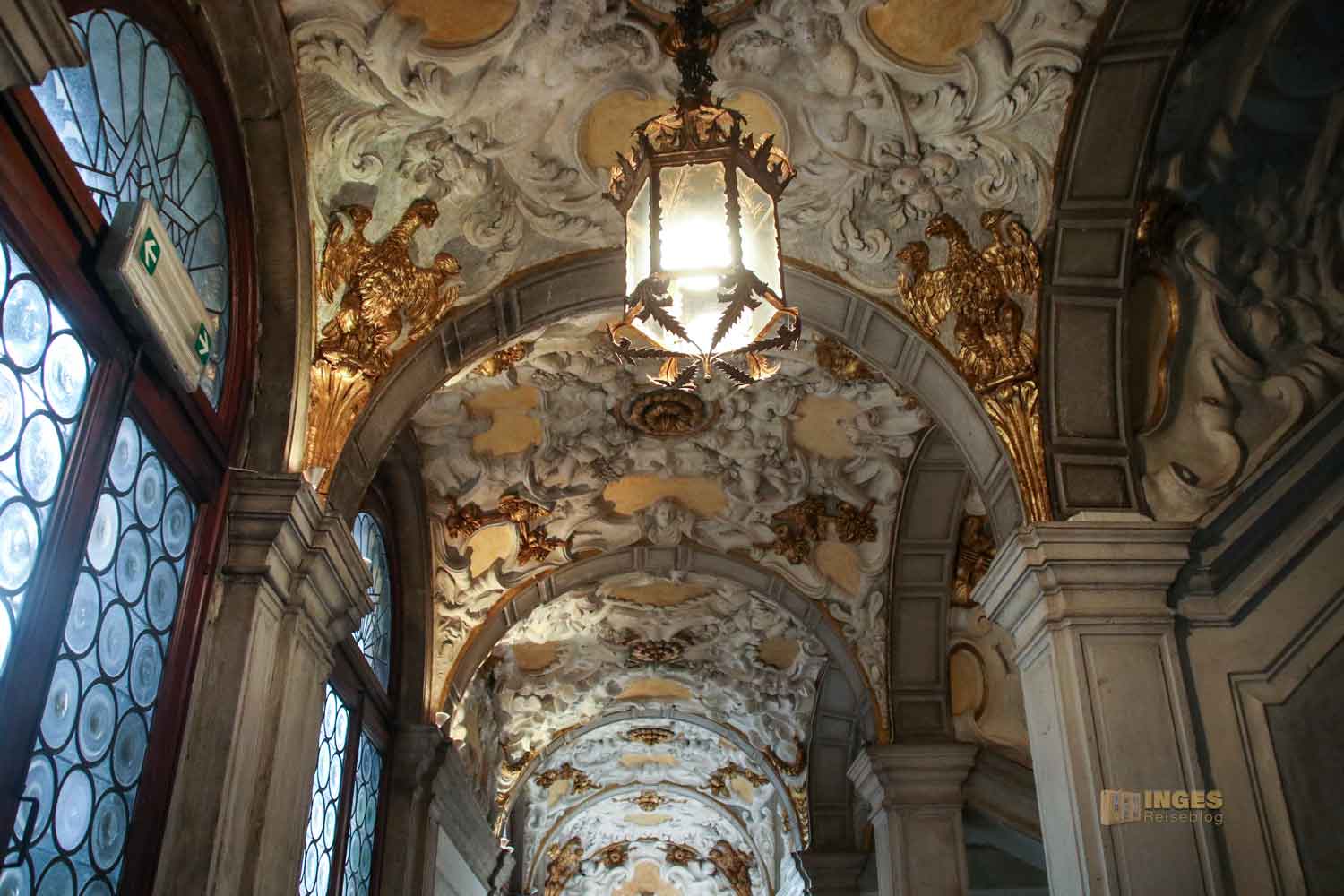 Abbondio Stazio hat sich hier im Flur 'ausgetobt' - vergoldete Adler, Engel und Fabelwesen aus der Mythologie in Stuck gesetzt.