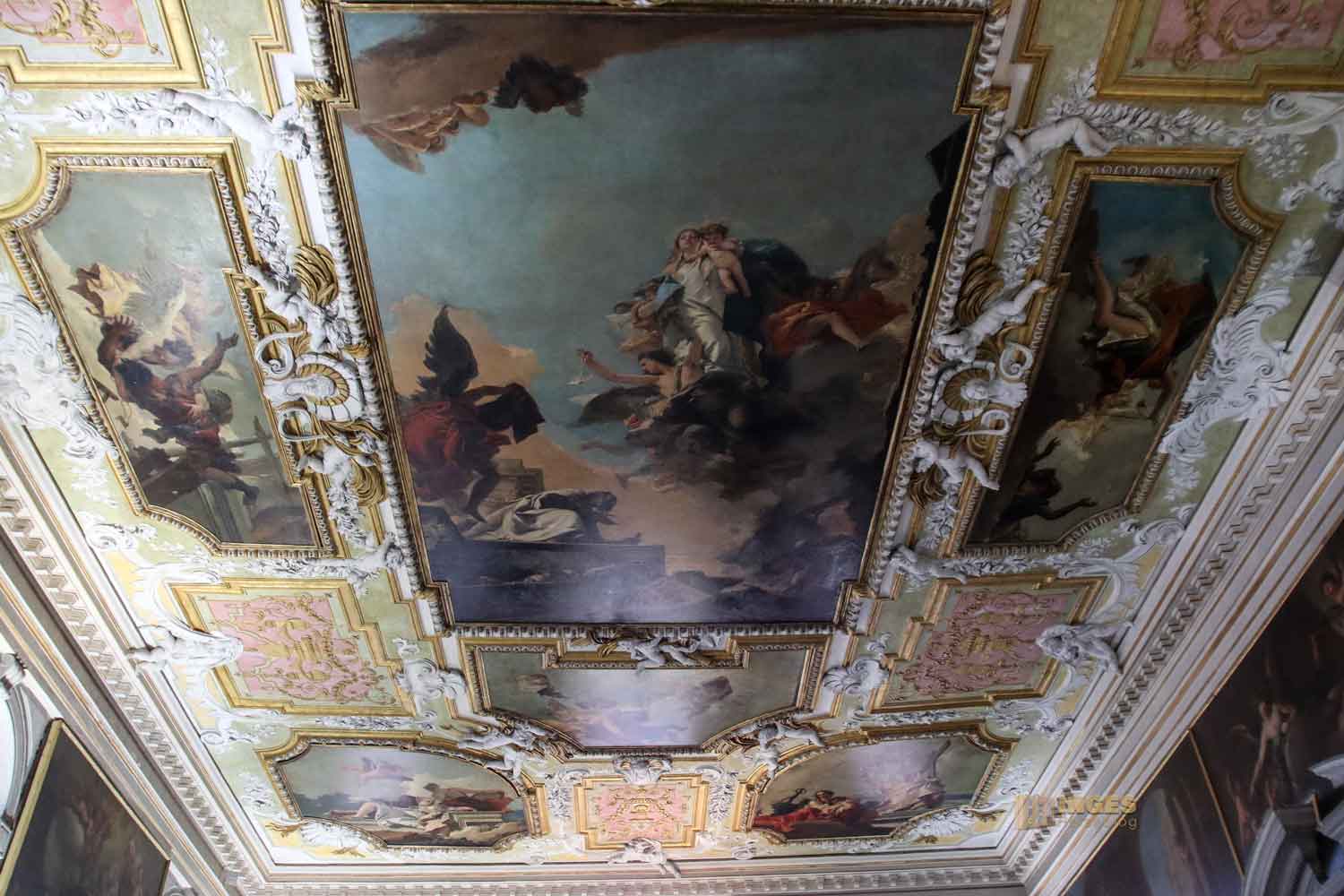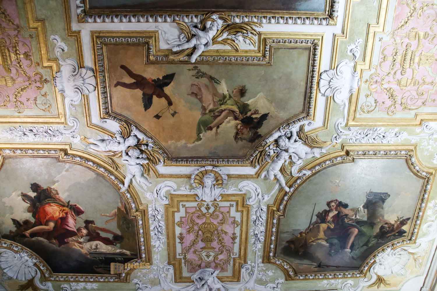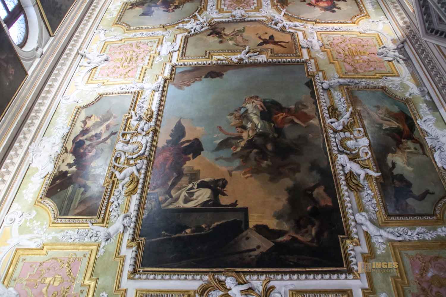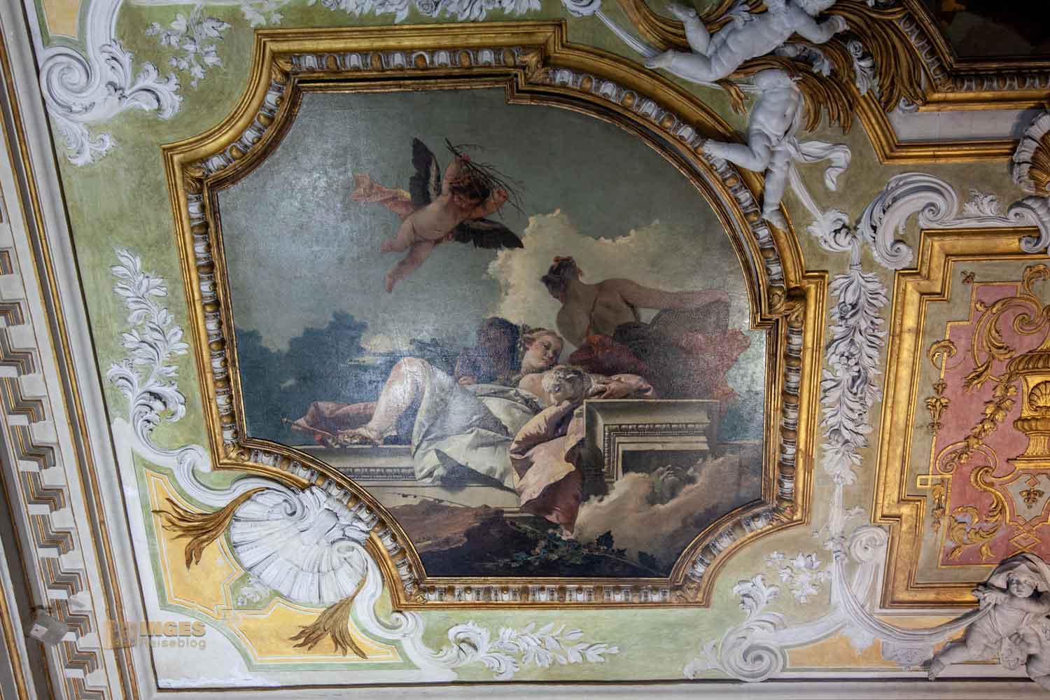 Da haben drei Künstler Hand in Hand gearbeitet. Gianbattista Tiepolo zwar zwischen 1740 und 1748 damit beschäftigt, 9 Ölgemälde an die Decke zu bringen.